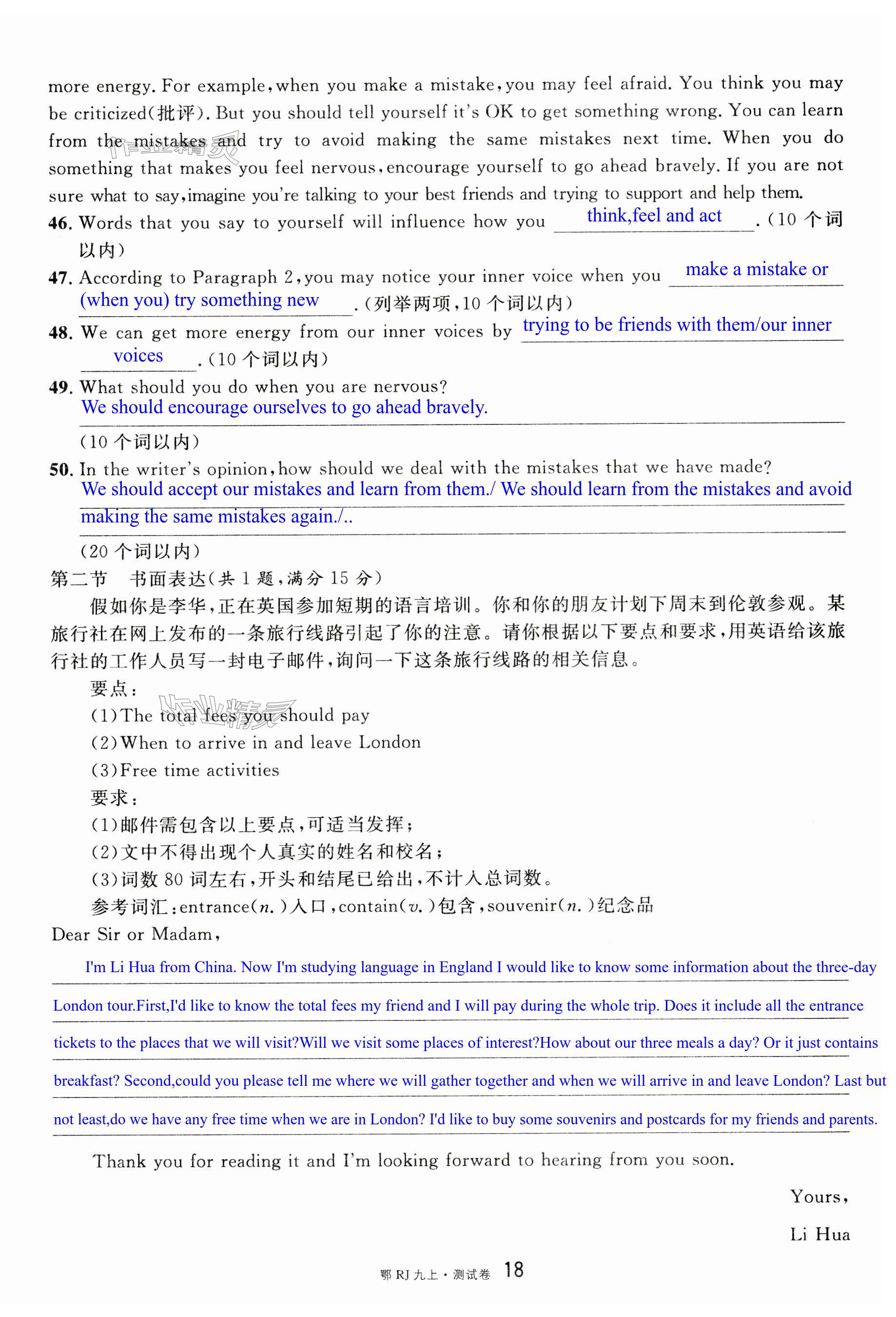 注:目前有些书本章节名称可能整理的还不是很完善,但都是按照顺序排列的,请同学们按照顺序仔细查找。练习册 2024年名校课堂九年级英语上册人教版湖北专版 答案主要是用来给同学们做完题方便对答案用的,请勿直接抄袭。