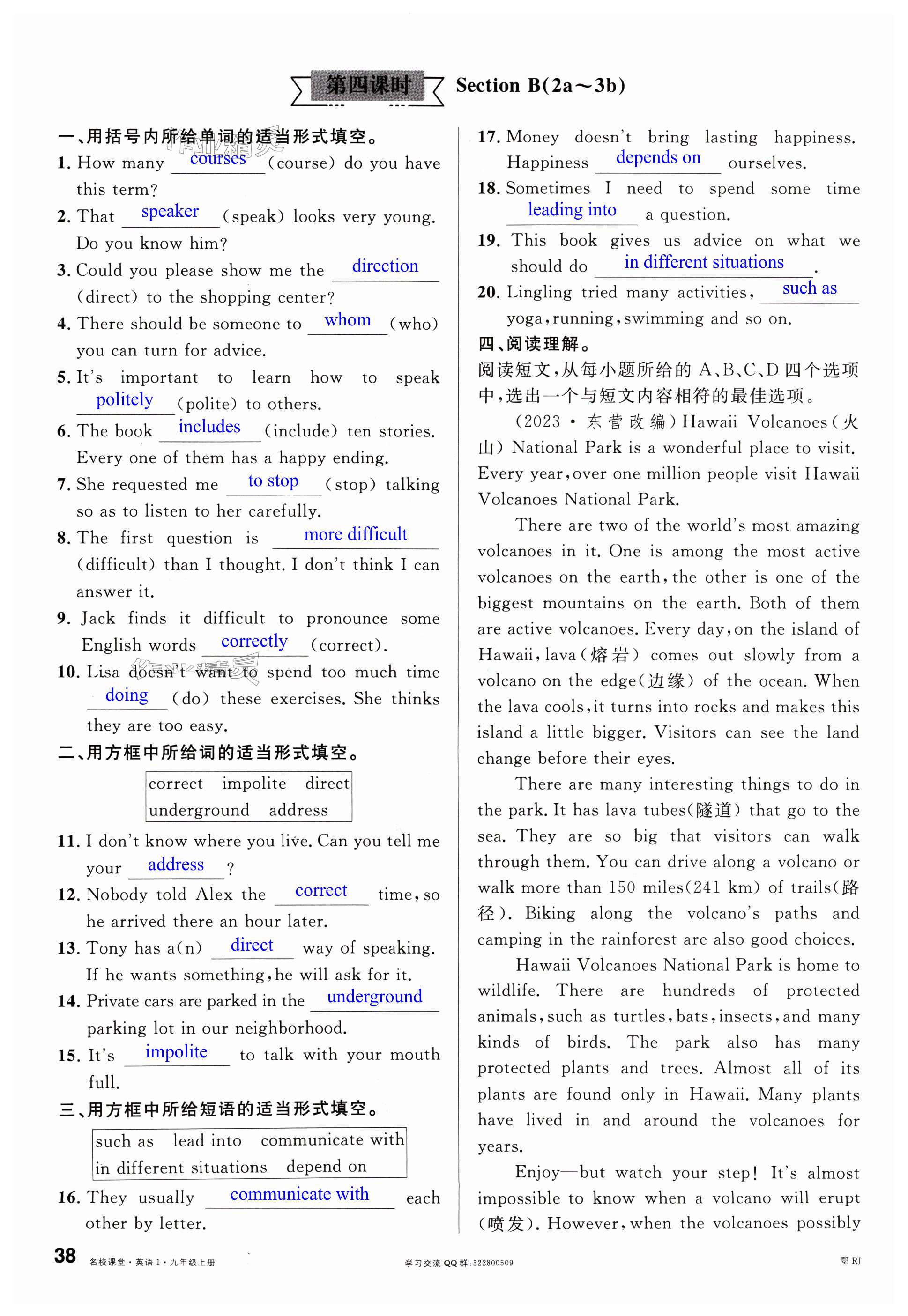 注:目前有些书本章节名称可能整理的还不是很完善,但都是按照顺序排列的,请同学们按照顺序仔细查找。练习册 2024年名校课堂九年级英语上册人教版湖北专版 答案主要是用来给同学们做完题方便对答案用的,请勿直接抄袭。