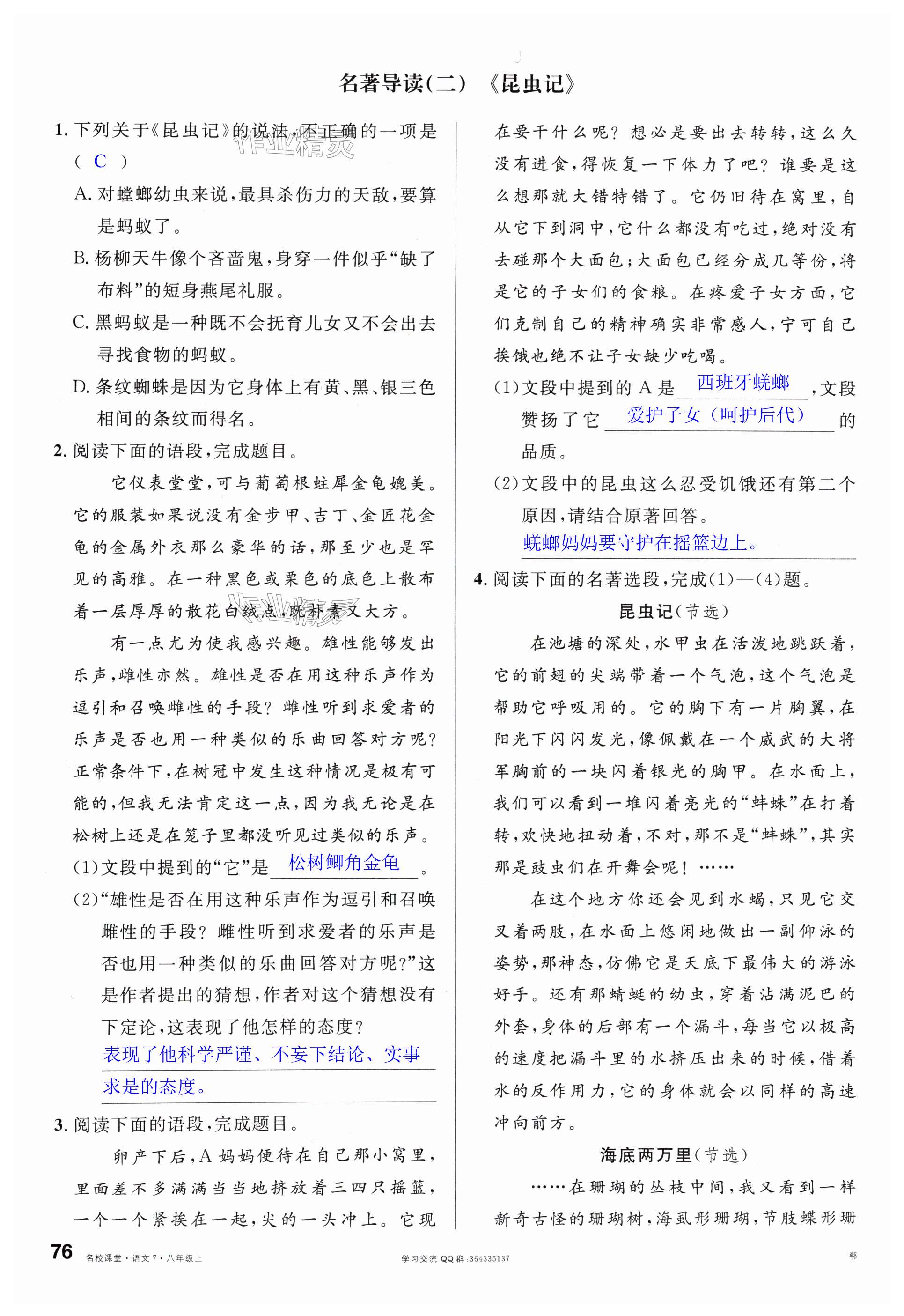 注:目前有些书本章节名称可能整理的还不是很完善,但都是按照顺序排列的,请同学们按照顺序仔细查找。练习册 2024年名校课堂八年级语文上册人教版湖北专版 答案主要是用来给同学们做完题方便对答案用的,请勿直接抄袭。