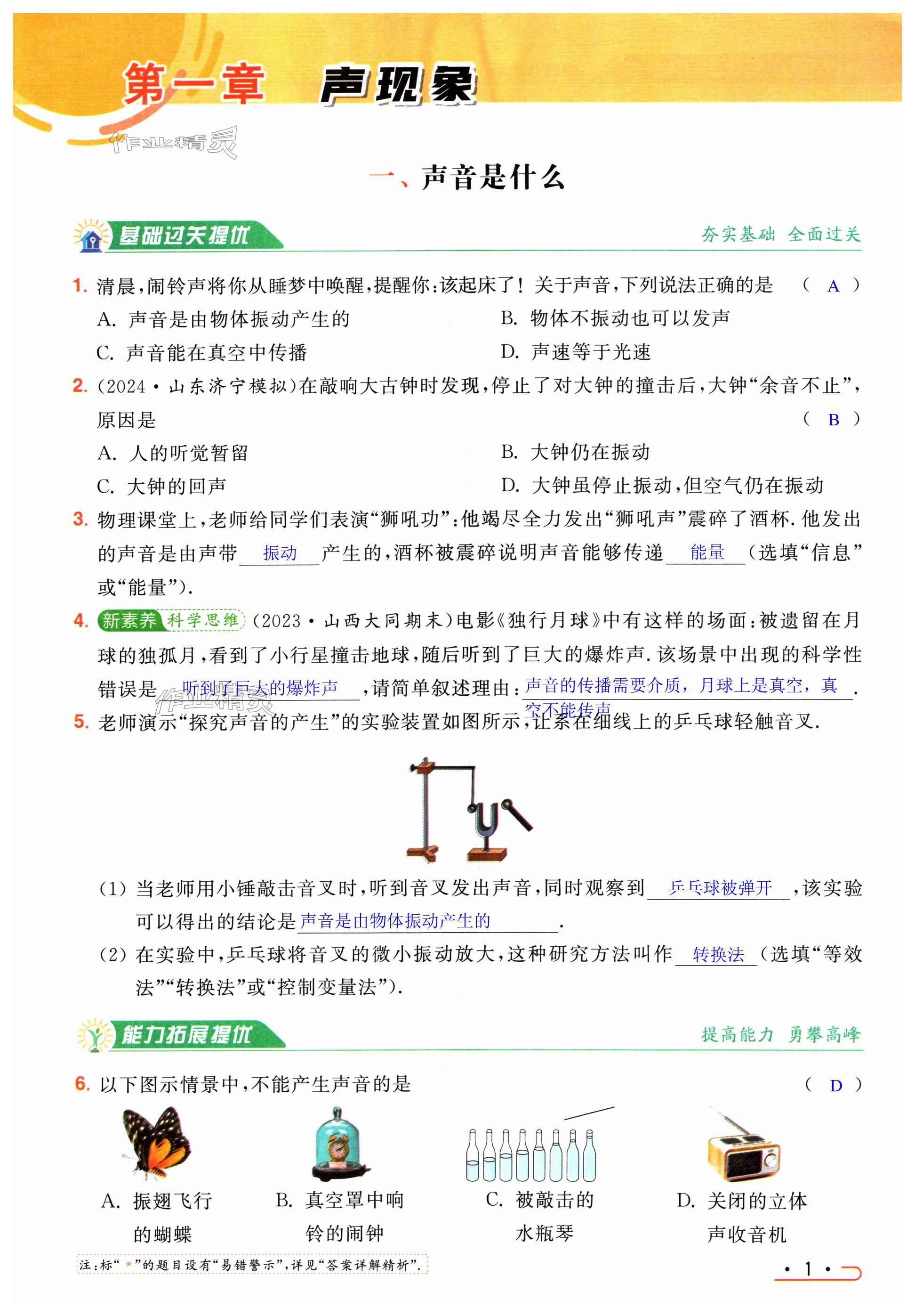 注:目前有些书本章节名称可能整理的还不是很完善,但都是按照顺序排列的,请同学们按照顺序仔细查找。练习册2024年亮点给力提优课时作业本八年级物理上册苏科版答案主要是用来给同学们做完题方便对答案用的,请勿直接抄袭。