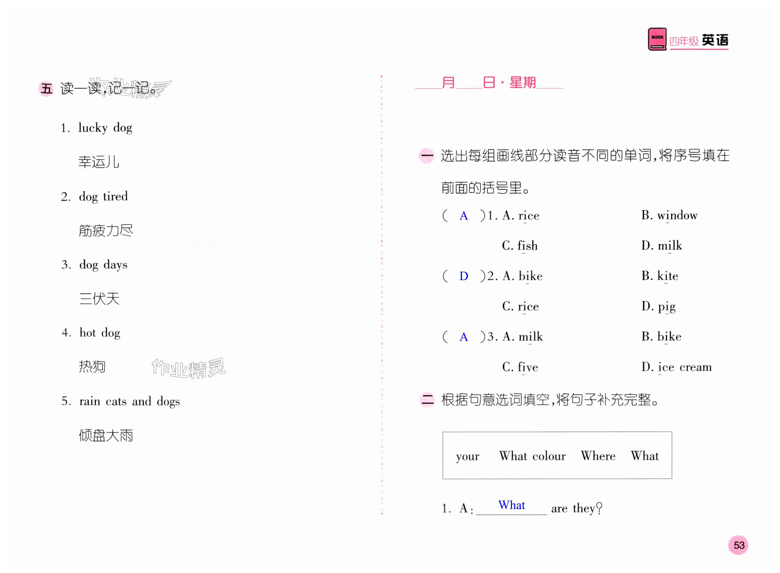 2024年暑假作业四年级英语人教PEP版安徽少年儿童出版社
