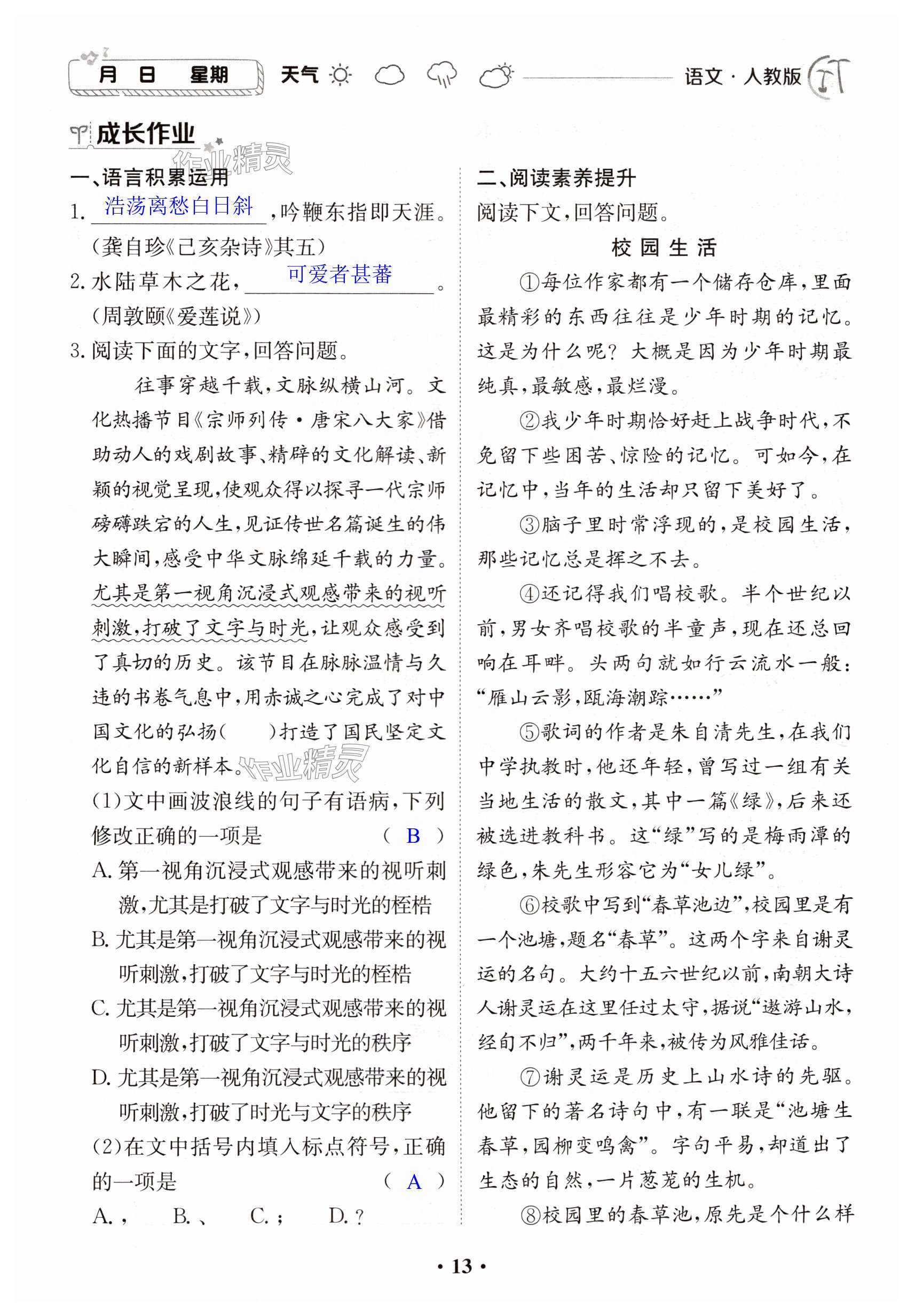 注:目前有些书本章节名称可能整理的还不是很完善,但都是按照顺序排列的,请同学们按照顺序仔细查找。练习册 2024年暑假作业江西高校出版社七年级综合人教版2 答案主要是用来给同学们做完题方便对答案用的,请勿直接抄袭。