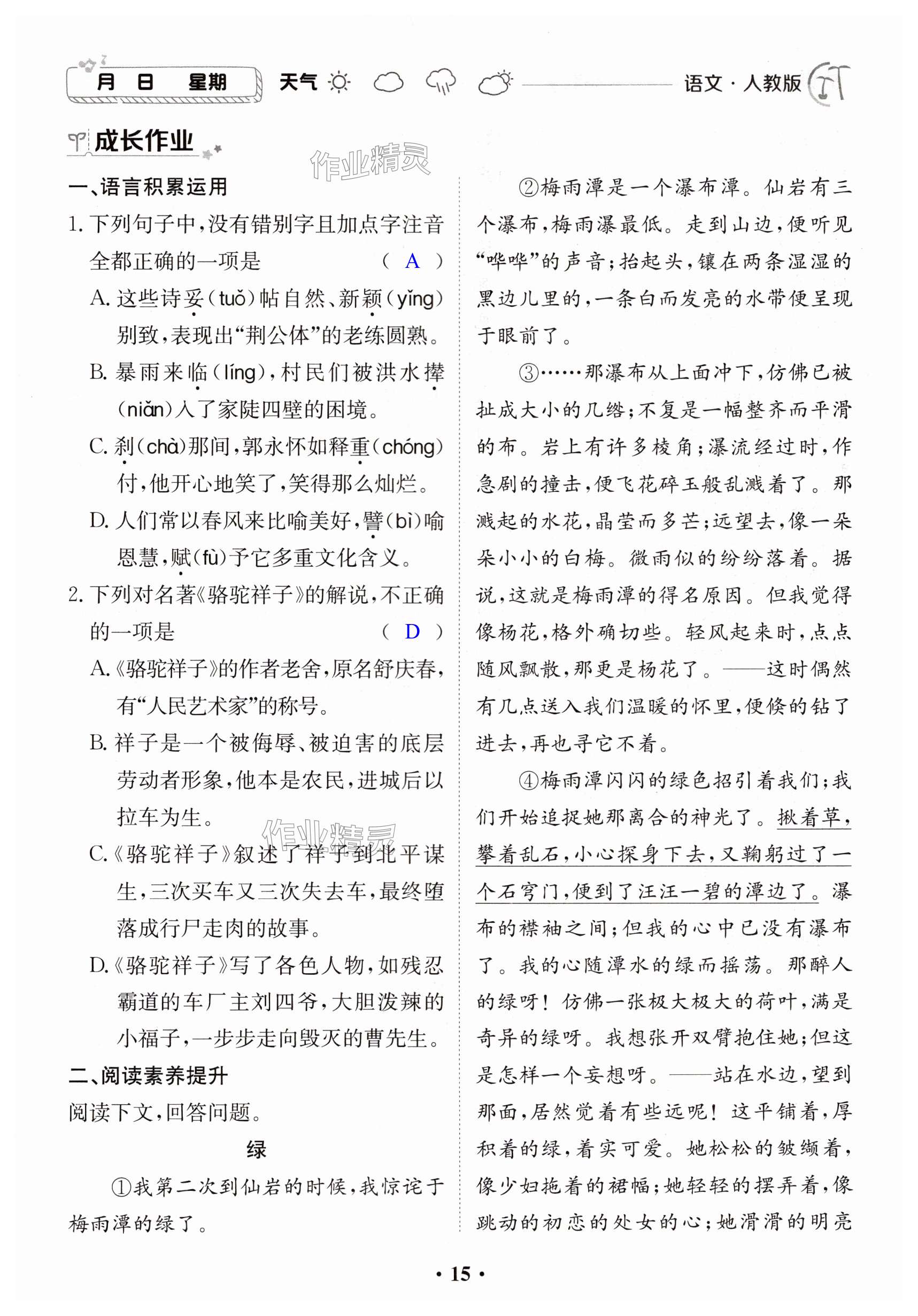 注:目前有些书本章节名称可能整理的还不是很完善,但都是按照顺序排列的,请同学们按照顺序仔细查找。练习册 2024年暑假作业江西高校出版社七年级综合人教版2 答案主要是用来给同学们做完题方便对答案用的,请勿直接抄袭。