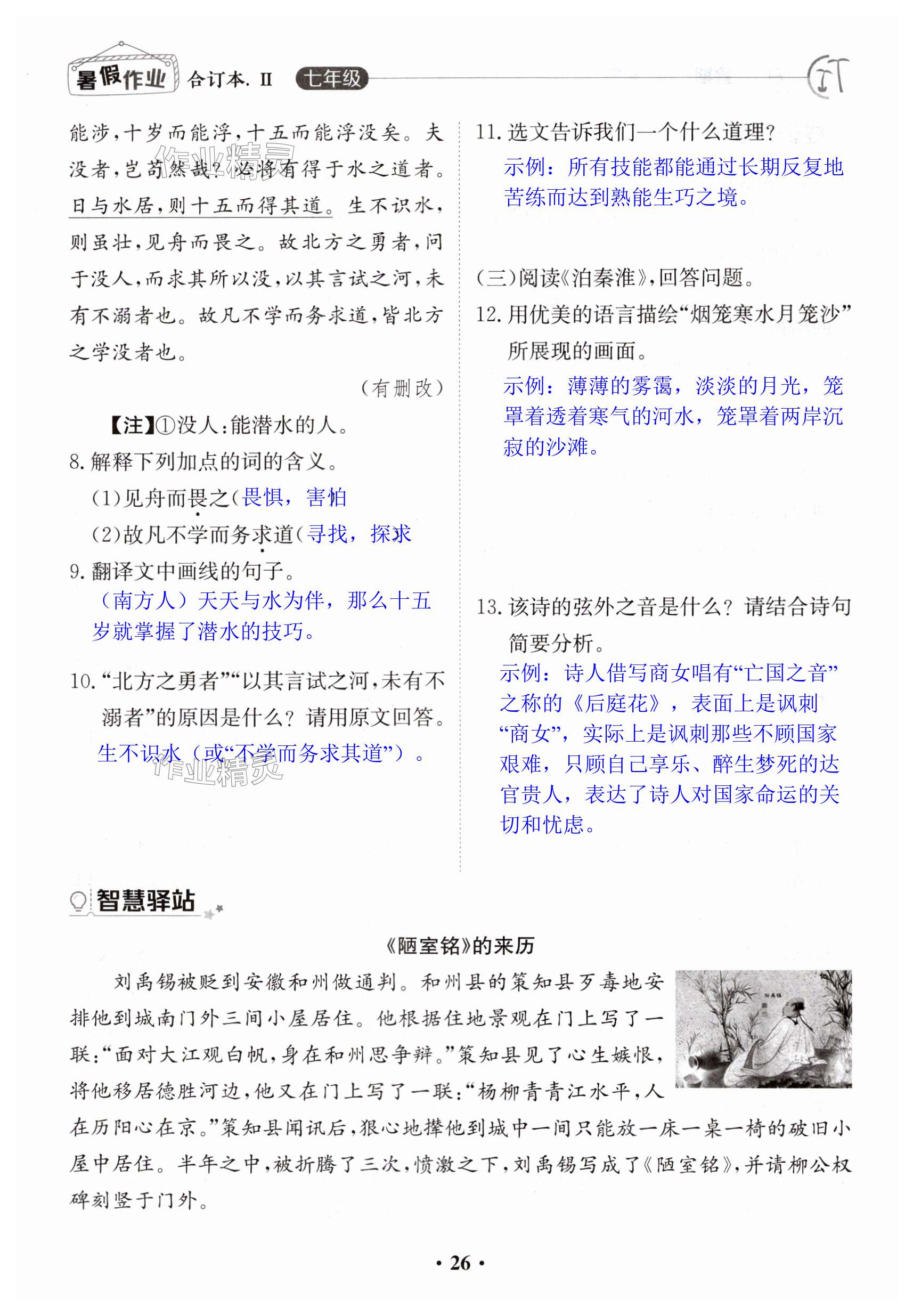 注:目前有些书本章节名称可能整理的还不是很完善,但都是按照顺序排列的,请同学们按照顺序仔细查找。练习册 2024年暑假作业江西高校出版社七年级综合人教版2 答案主要是用来给同学们做完题方便对答案用的,请勿直接抄袭。
