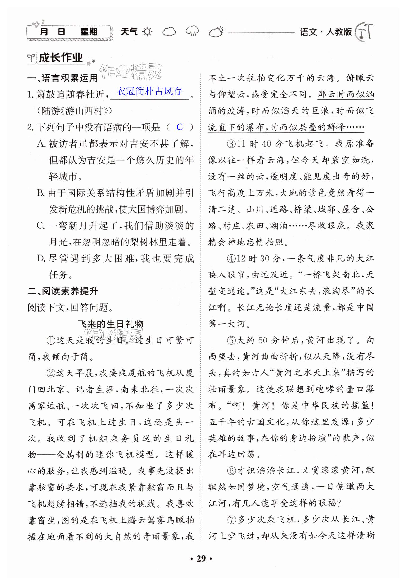注:目前有些书本章节名称可能整理的还不是很完善,但都是按照顺序排列的,请同学们按照顺序仔细查找。练习册 2024年暑假作业江西高校出版社七年级综合人教版2 答案主要是用来给同学们做完题方便对答案用的,请勿直接抄袭。
