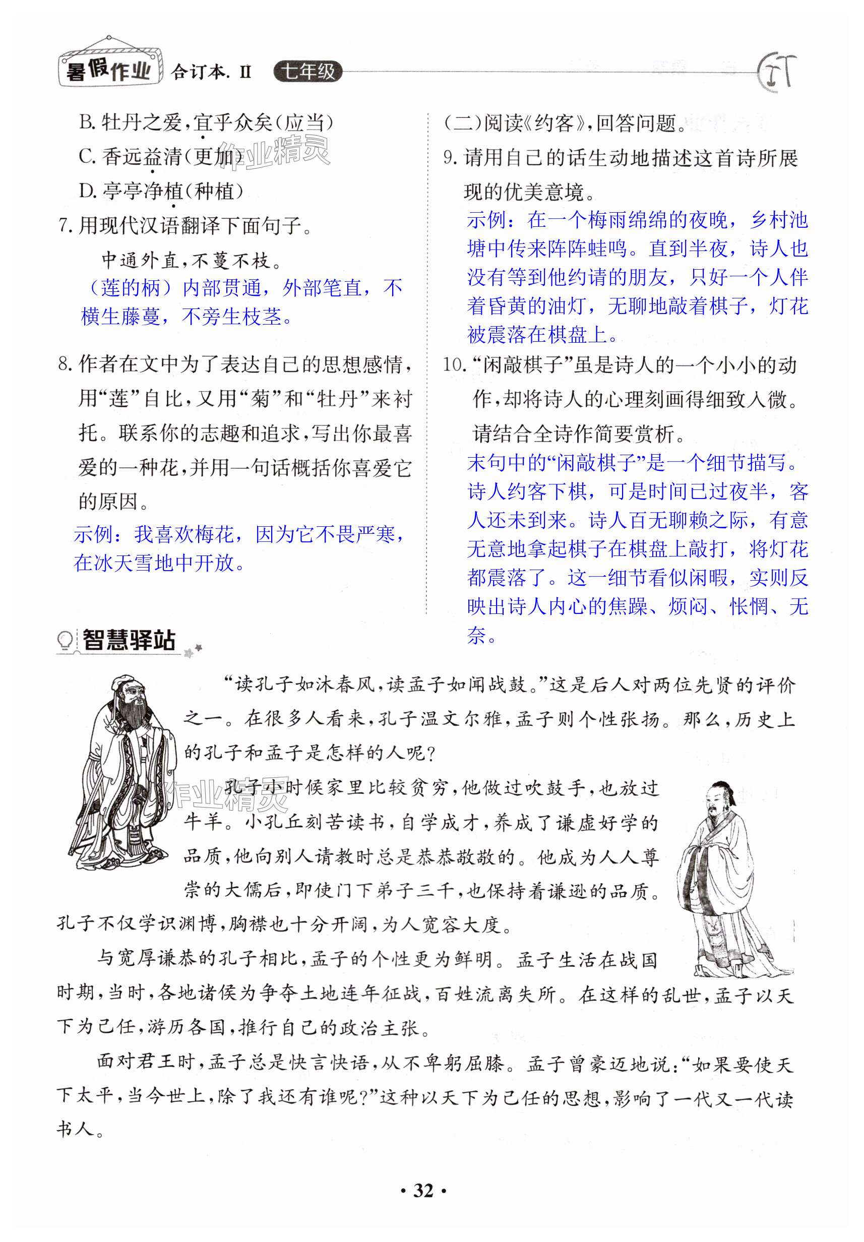注:目前有些书本章节名称可能整理的还不是很完善,但都是按照顺序排列的,请同学们按照顺序仔细查找。练习册 2024年暑假作业江西高校出版社七年级综合人教版2 答案主要是用来给同学们做完题方便对答案用的,请勿直接抄袭。