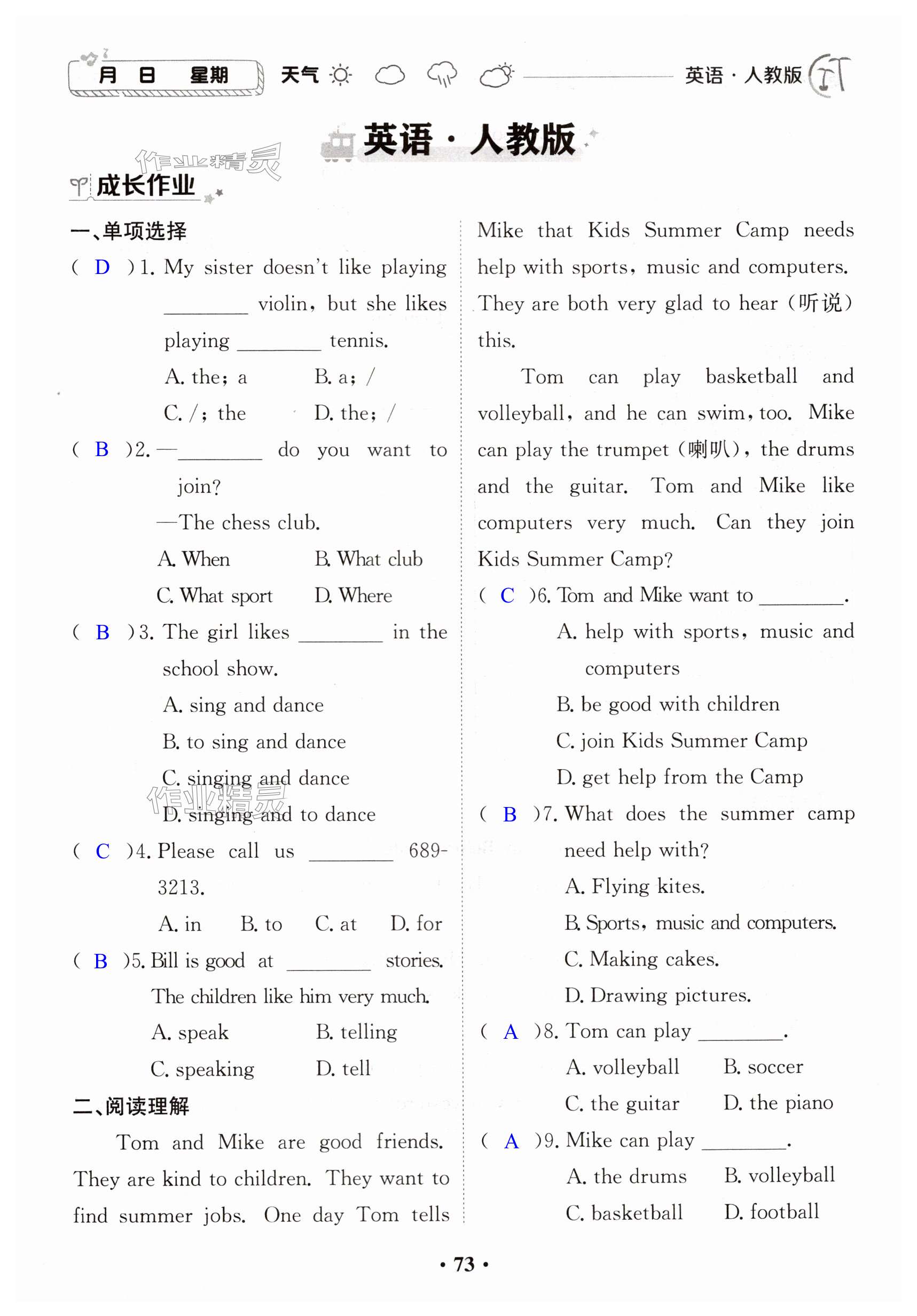 注:目前有些书本章节名称可能整理的还不是很完善,但都是按照顺序排列的,请同学们按照顺序仔细查找。练习册 2024年暑假作业江西高校出版社七年级综合人教版2 答案主要是用来给同学们做完题方便对答案用的,请勿直接抄袭。