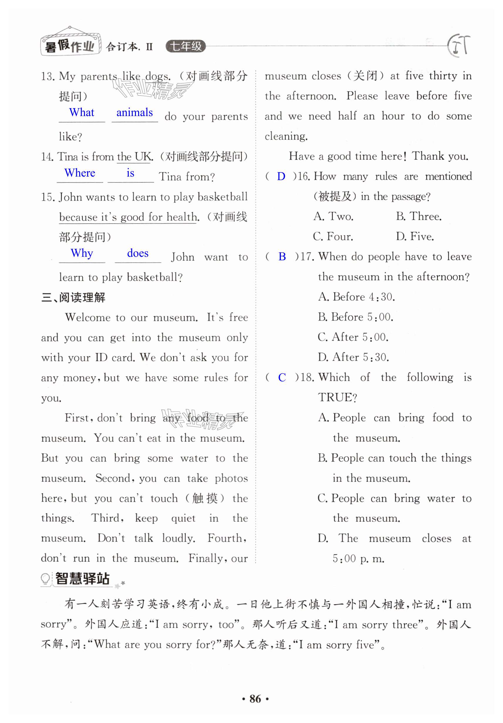 注:目前有些书本章节名称可能整理的还不是很完善,但都是按照顺序排列的,请同学们按照顺序仔细查找。练习册 2024年暑假作业江西高校出版社七年级综合人教版2 答案主要是用来给同学们做完题方便对答案用的,请勿直接抄袭。