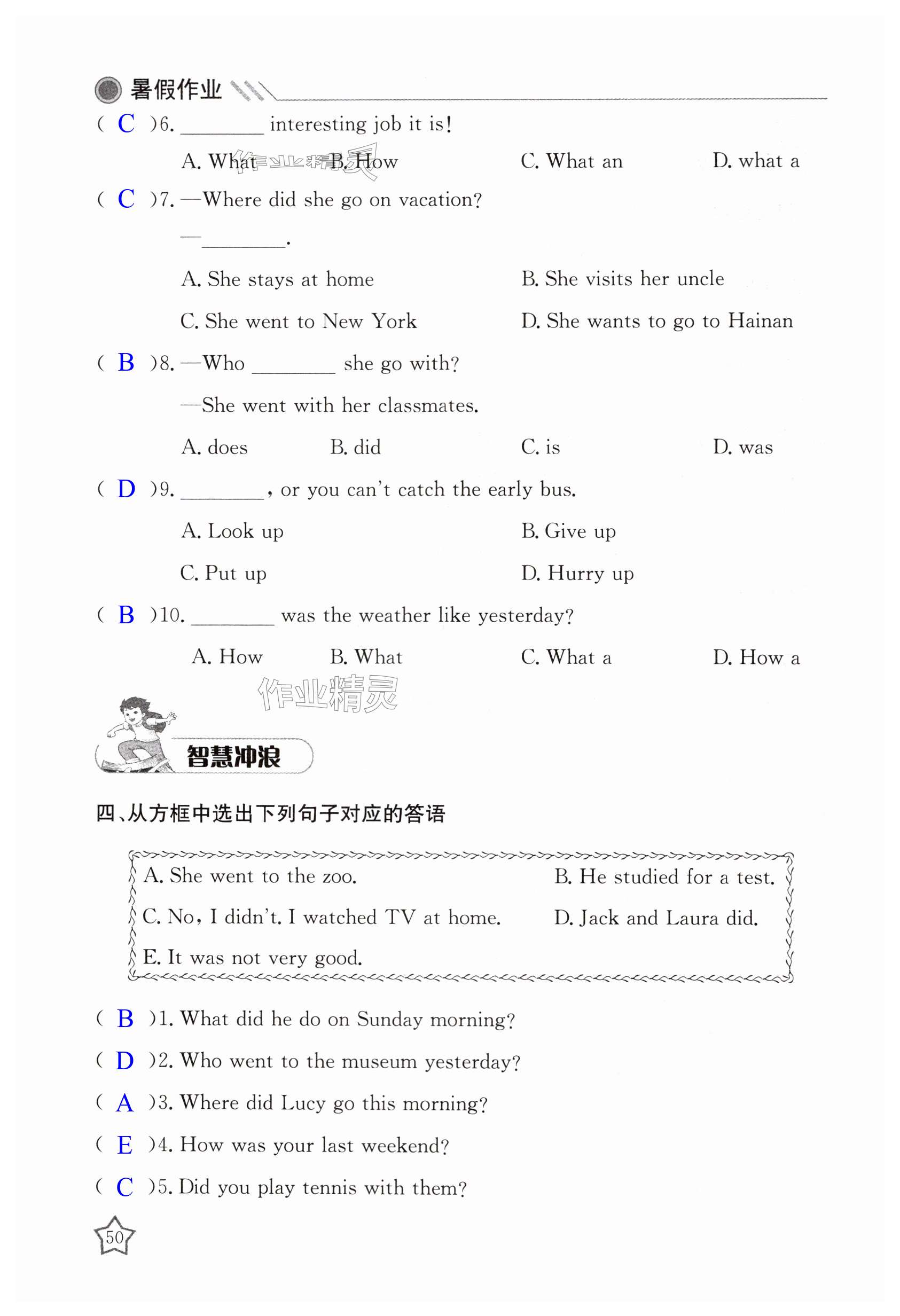 注:目前有些书本章节名称可能整理的还不是很完善,但都是按照顺序排列的,请同学们按照顺序仔细查找。练习册 2024年湘岳假期暑假作业七年级英语人教版 答案主要是用来给同学们做完题方便对答案用的,请勿直接抄袭。