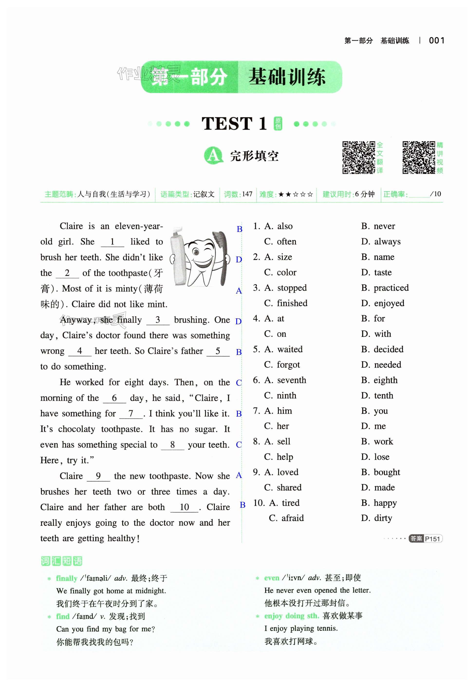 注:目前有些书本章节名称可能整理的还不是很完善,但都是按照顺序排列的,请同学们按照顺序仔细查找。练习册 2024年一本英语完形填空与阅读理解150篇七年级 答案主要是用来给同学们做完题方便对答案用的,请勿直接抄袭。