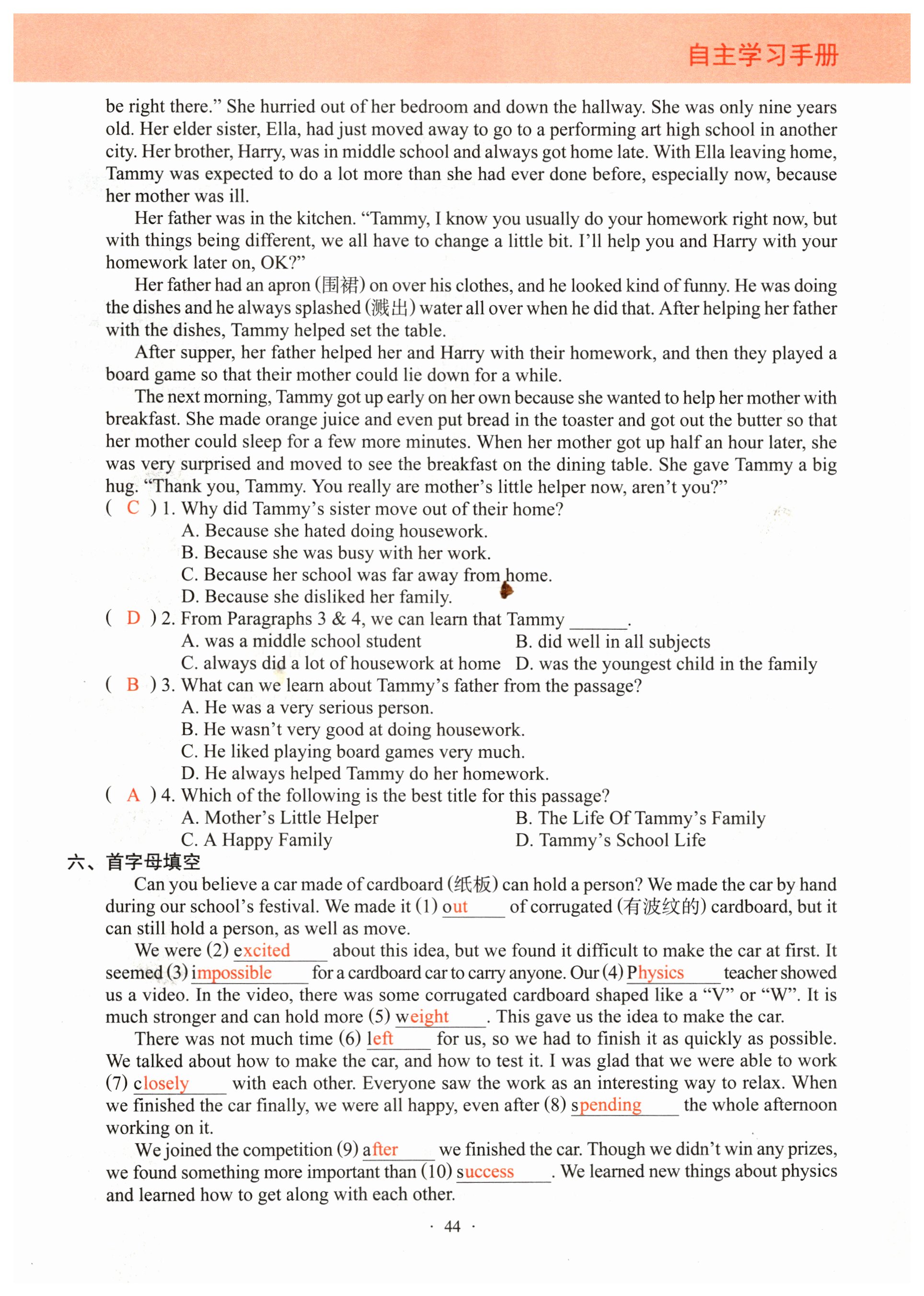 注:目前有些书本章节名称可能整理的还不是很完善,但都是按照顺序排列的,请同学们按照顺序仔细查找。练习册 2024年自主学习手册辽宁少年儿童出版社八年级英语上册译林版 答案主要是用来给同学们做完题方便对答案用的,请勿直接抄袭。
