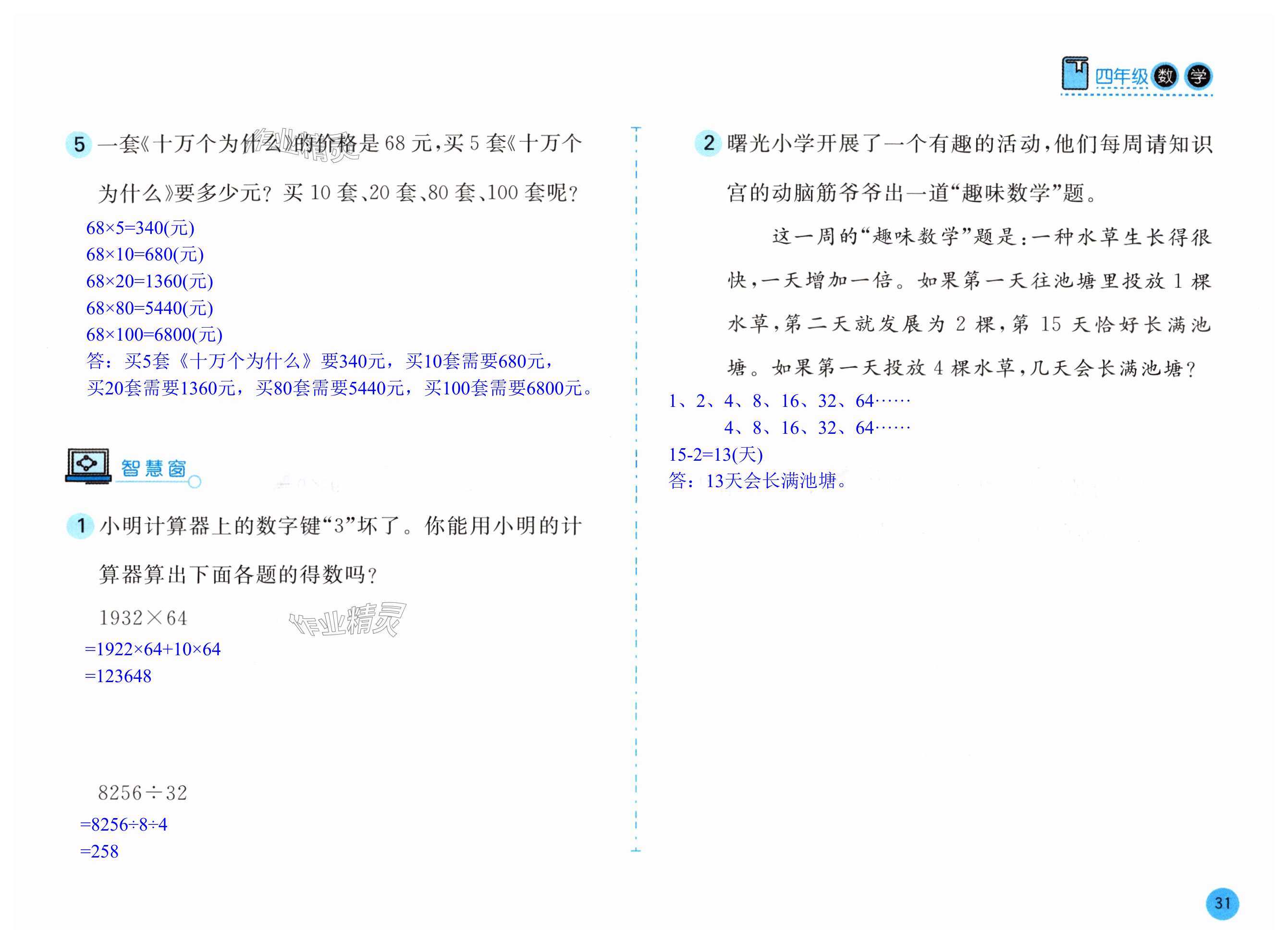 《2024年暑假作业安徽少年儿童出版社四年级数学苏教版》