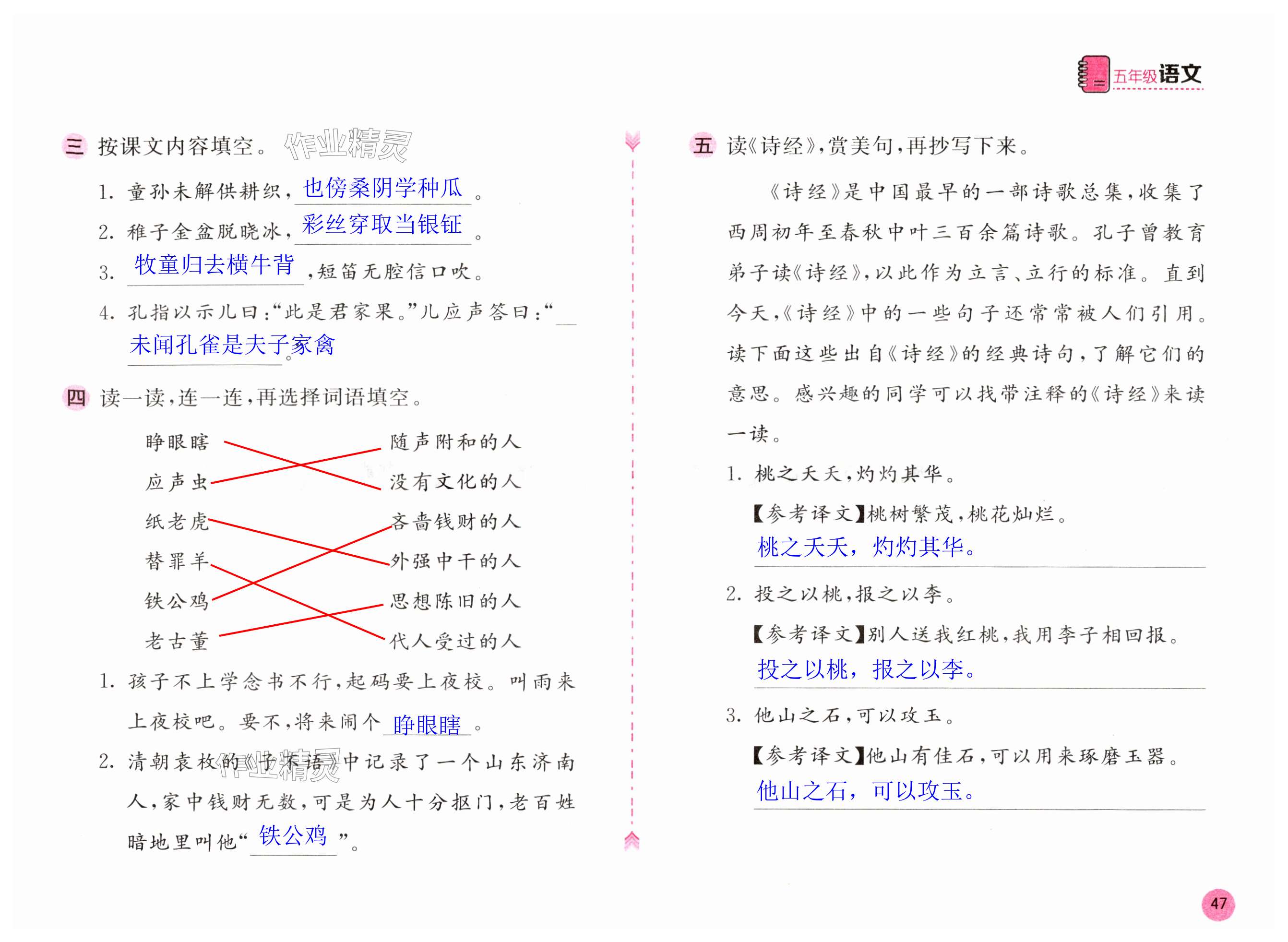 注:目前有些书本章节名称可能整理的还不是很完善,但都是按照顺序排列的,请同学们按照顺序仔细查找。练习册 2024年暑假作业安徽少年儿童出版社五年级语文人教版 答案主要是用来给同学们做完题方便对答案用的,请勿直接抄袭。