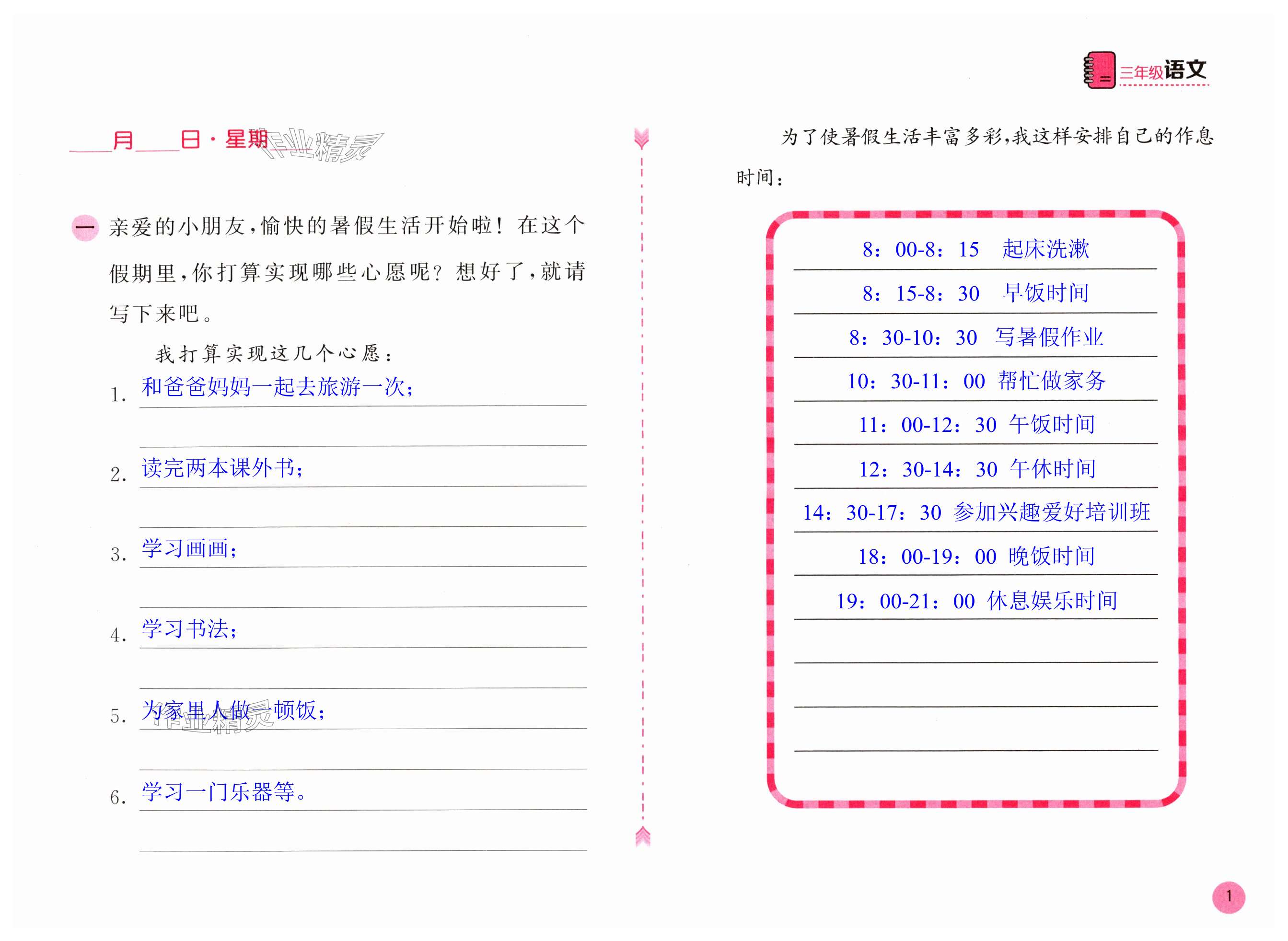 《2024年暑假作业安徽少年儿童出版社三年级语文人教版》