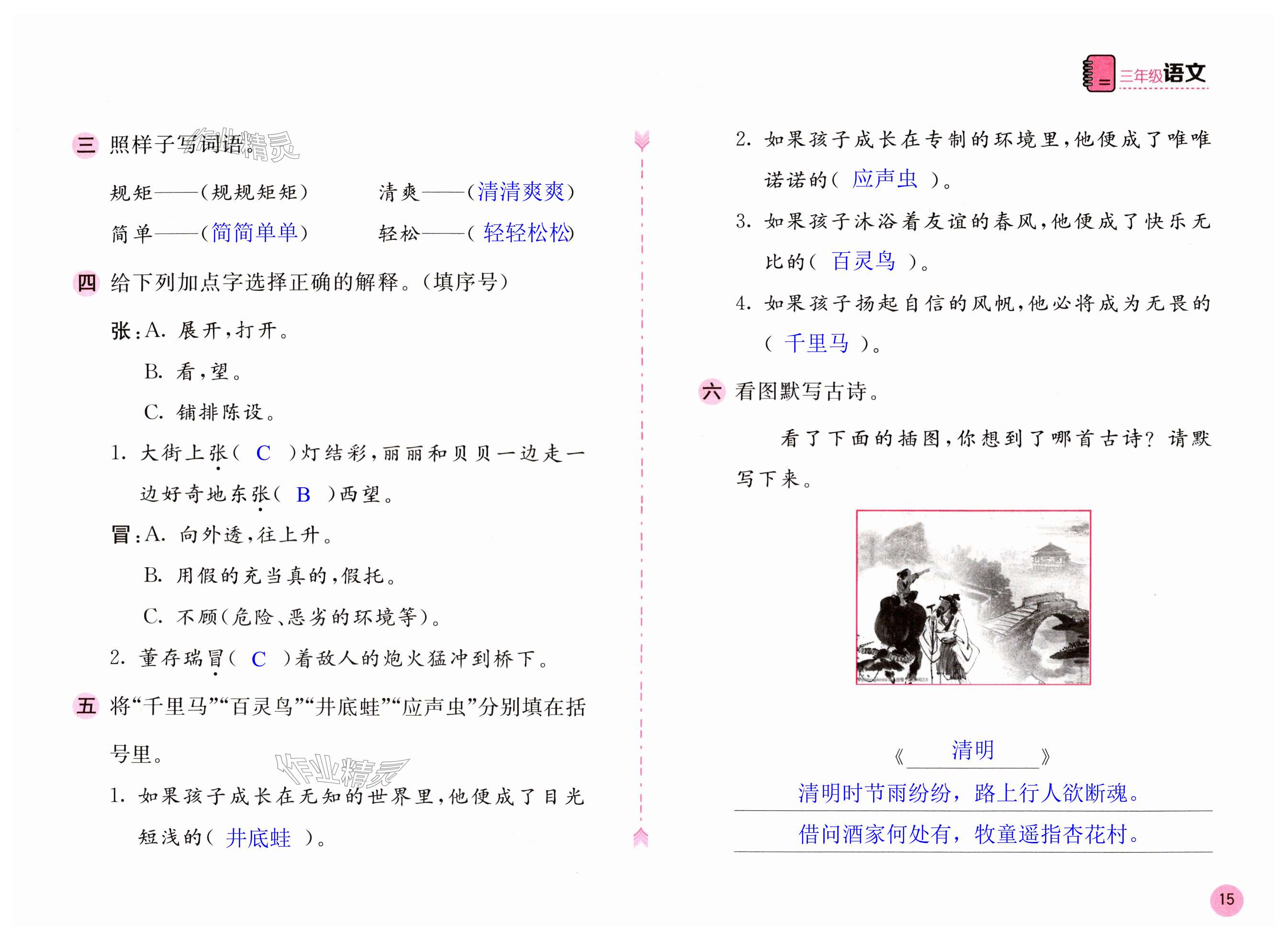 注:目前有些书本章节名称可能整理的还不是很完善,但都是按照顺序排列的,请同学们按照顺序仔细查找。练习册 2024年暑假作业安徽少年儿童出版社三年级语文人教版 答案主要是用来给同学们做完题方便对答案用的,请勿直接抄袭。