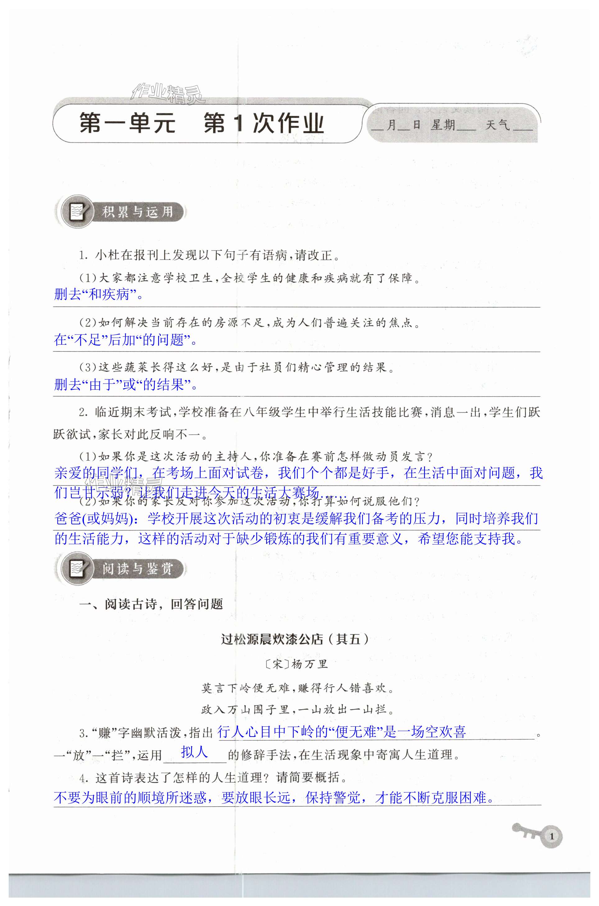 2024年暑假作业华中科技大学出版社八年级语文人教版