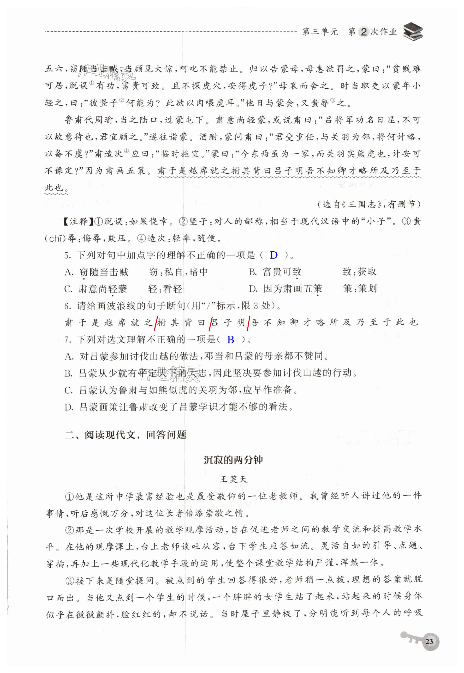 注:目前有些书本章节名称可能整理的还不是很完善,但都是按照顺序排列的,请同学们按照顺序仔细查找。练习册 2024年暑假作业华中科技大学出版社八年级语文人教版 答案主要是用来给同学们做完题方便对答案用的,请勿直接抄袭。
