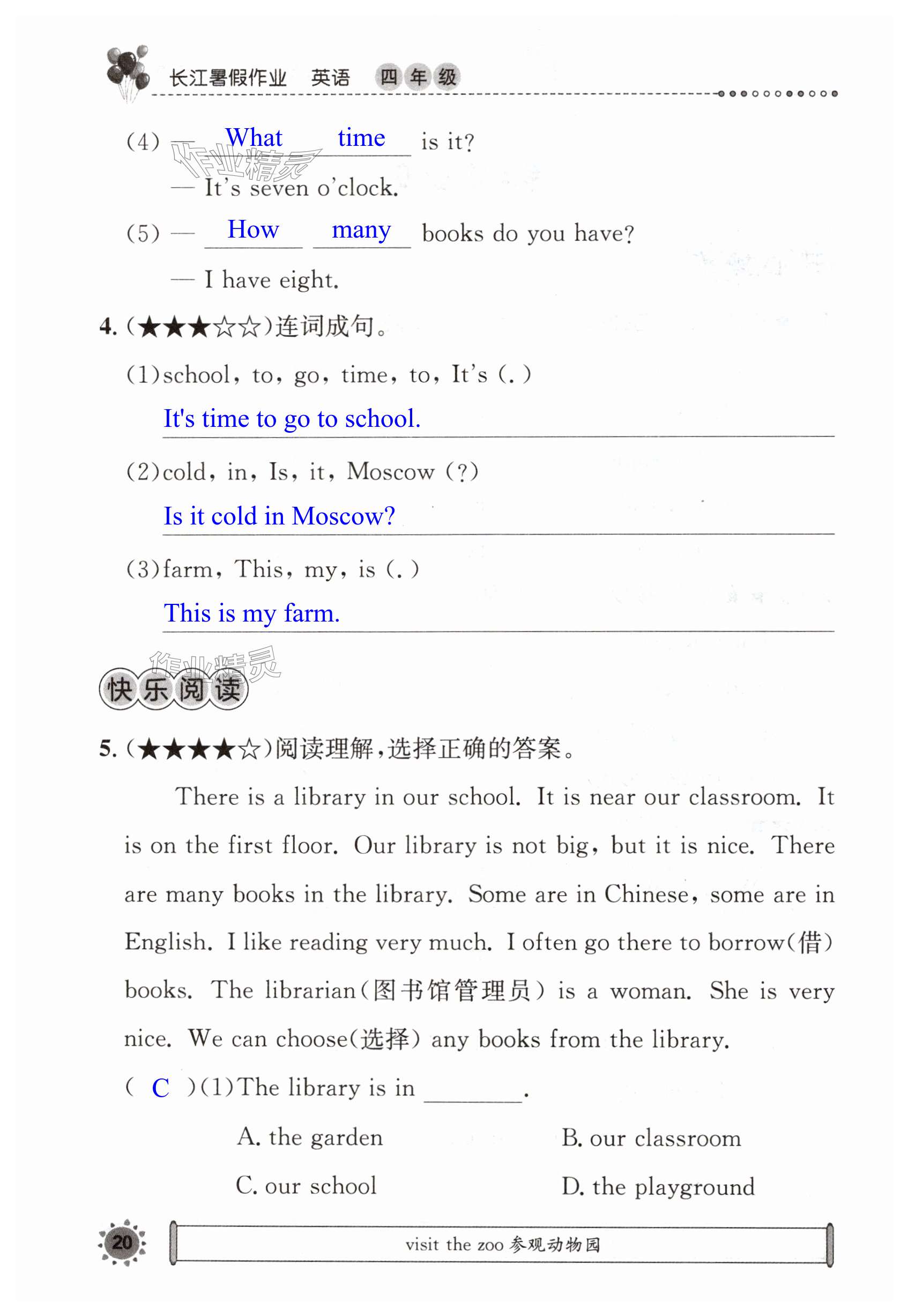 注:目前有些书本章节名称可能整理的还不是很完善,但都是按照顺序排列的,请同学们按照顺序仔细查找。练习册 2024年长江暑假作业四年级英语崇文书局 答案主要是用来给同学们做完题方便对答案用的,请勿直接抄袭。
