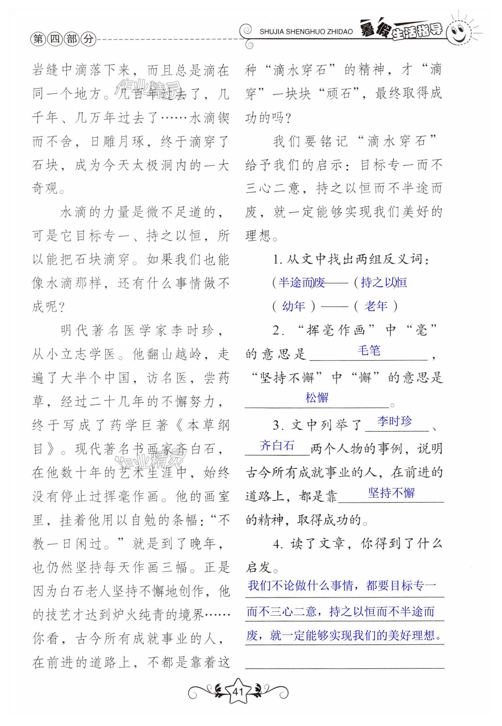 注:目前有些书本章节名称可能整理的还不是很完善,但都是按照顺序排列的,请同学们按照顺序仔细查找。练习册 2024年暑假生活指导山东教育出版社四年级语数综合 答案主要是用来给同学们做完题方便对答案用的,请勿直接抄袭。
