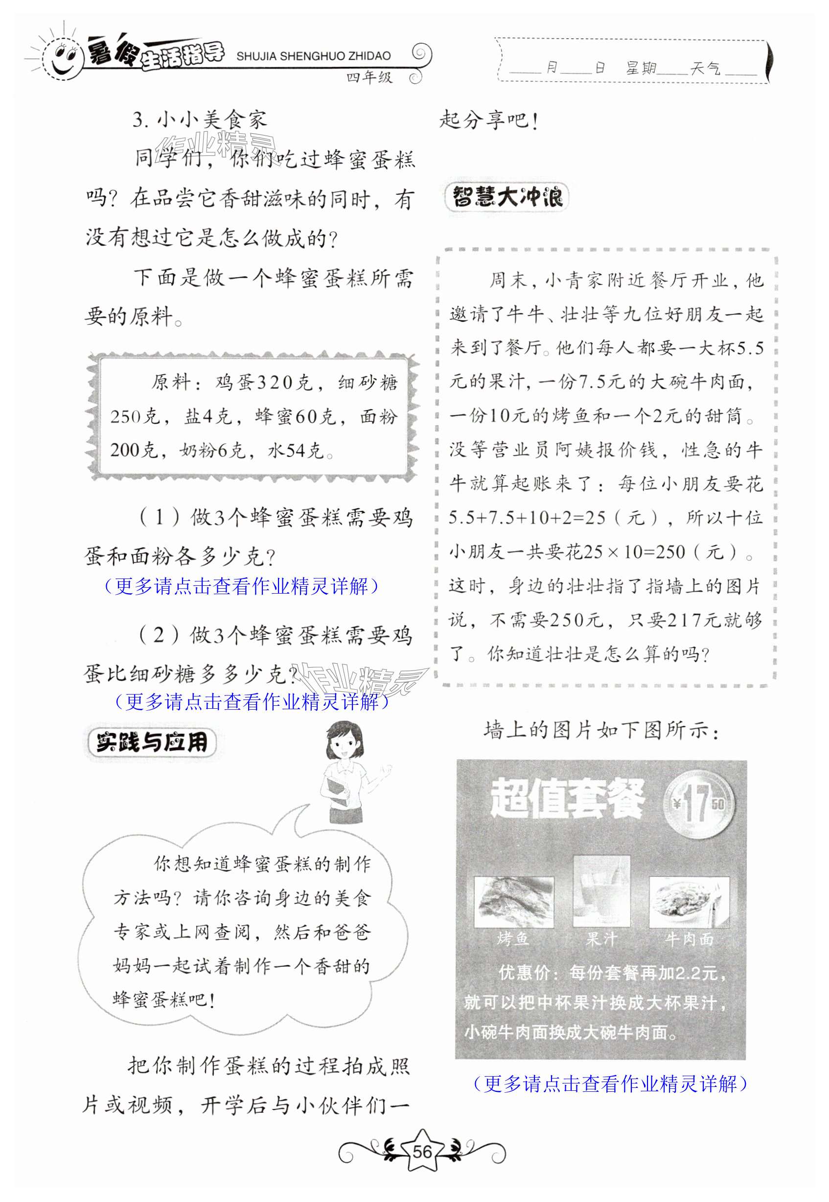 2024年暑假生活指导山东教育出版社四年级语数综合