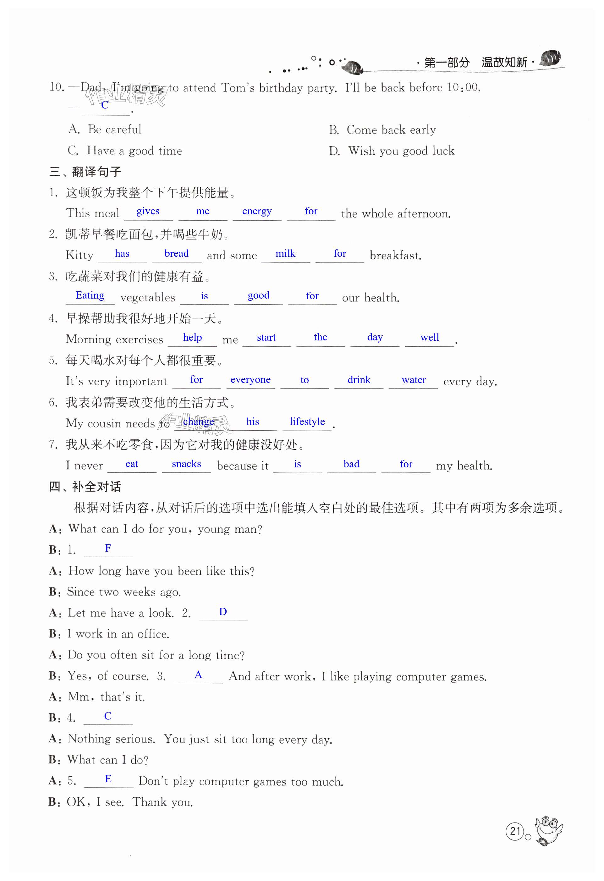 注:目前有些书本章节名称可能整理的还不是很完善,但都是按照顺序排列的,请同学们按照顺序仔细查找。练习册 2024年快乐暑假江苏人民出版社七年级英语译林版 答案主要是用来给同学们做完题方便对答案用的,请勿直接抄袭。