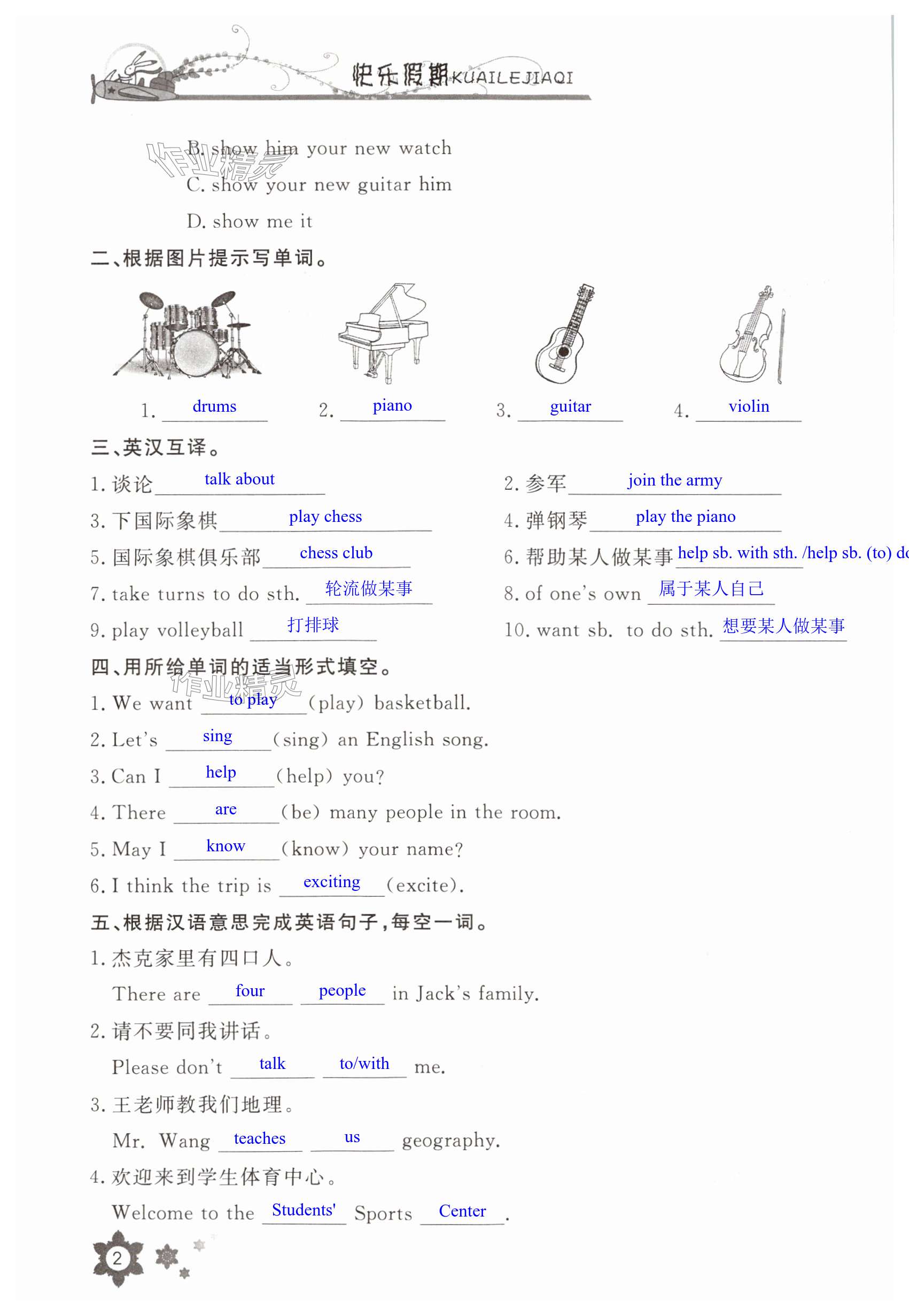 注:目前有些书本章节名称可能整理的还不是很完善,但都是按照顺序排列的,请同学们按照顺序仔细查找。练习册 2024年英语暑假作业七年级长江少年儿童出版社 答案主要是用来给同学们做完题方便对答案用的,请勿直接抄袭。