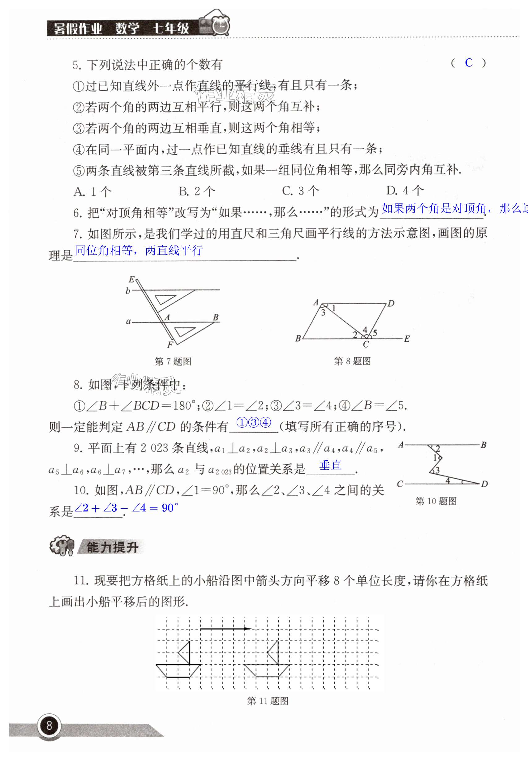 2024年长江作业本暑假作业湖北教育出版社七年级数学人教版