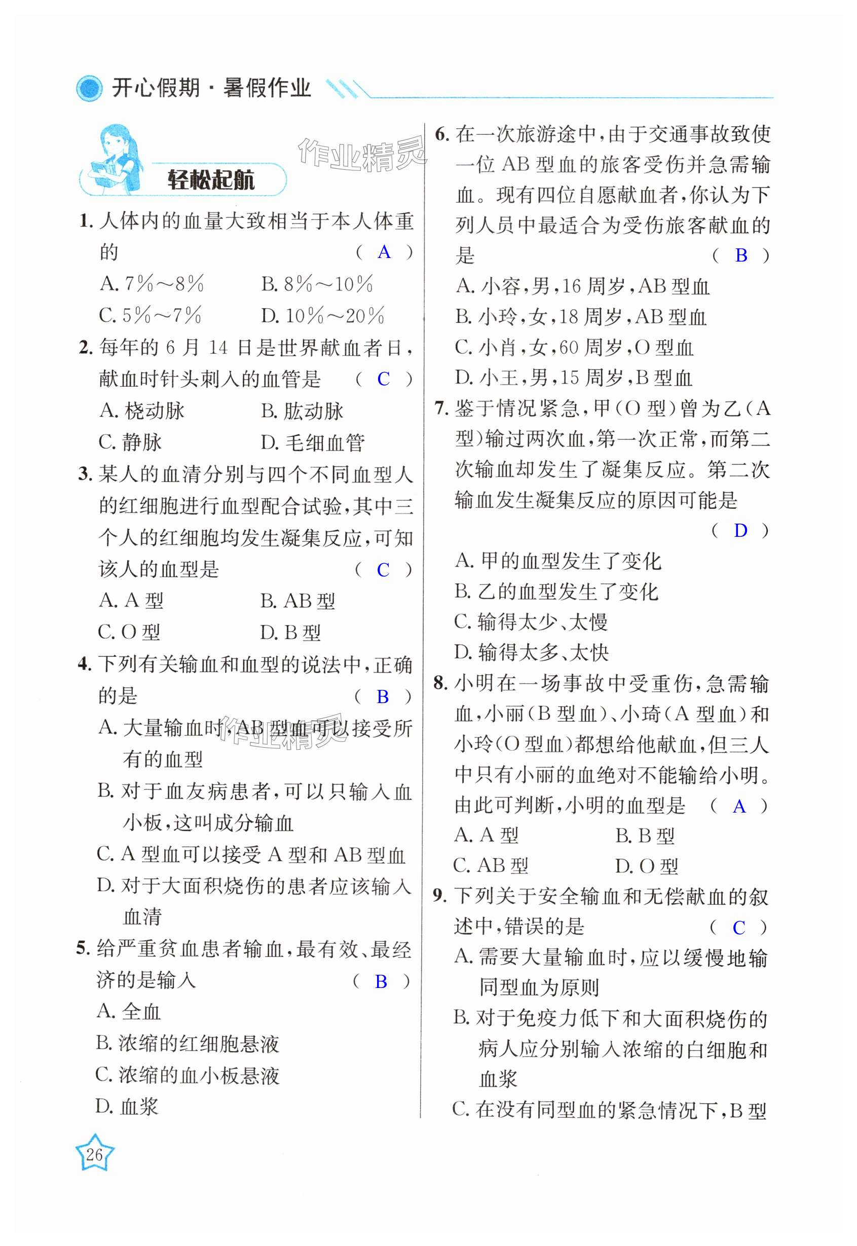 注:目前有些书本章节名称可能整理的还不是很完善,但都是按照顺序排列的,请同学们按照顺序仔细查找。练习册 2024年开心假期暑假作业七年级生物人教版武汉出版社 答案主要是用来给同学们做完题方便对答案用的,请勿直接抄袭。