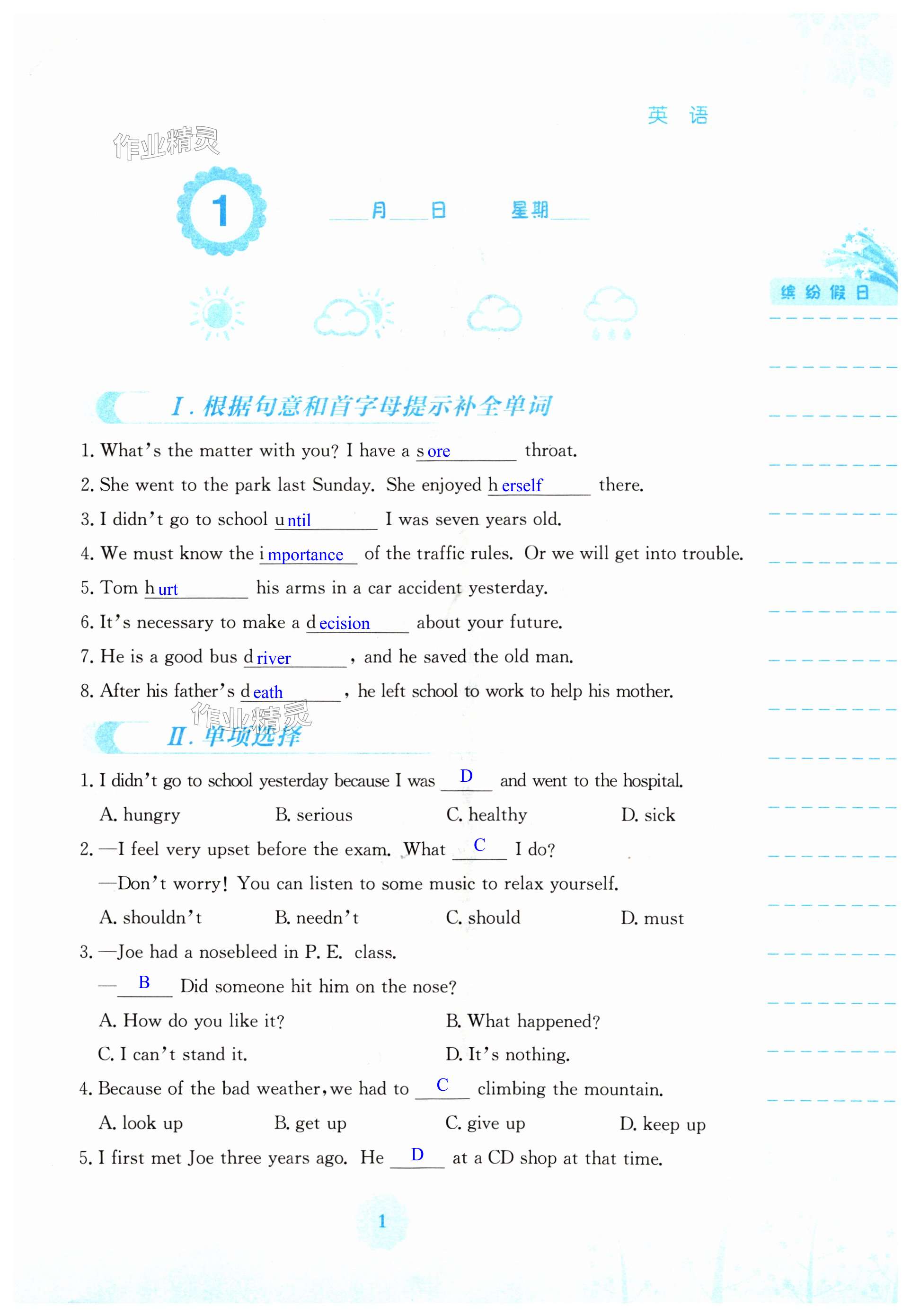 注:目前有些书本章节名称可能整理的还不是很完善,但都是按照顺序排列的,请同学们按照顺序仔细查找。练习册 2024年暑假生活安徽教育出版社八年级英语人教版 答案主要是用来给同学们做完题方便对答案用的,请勿直接抄袭。
