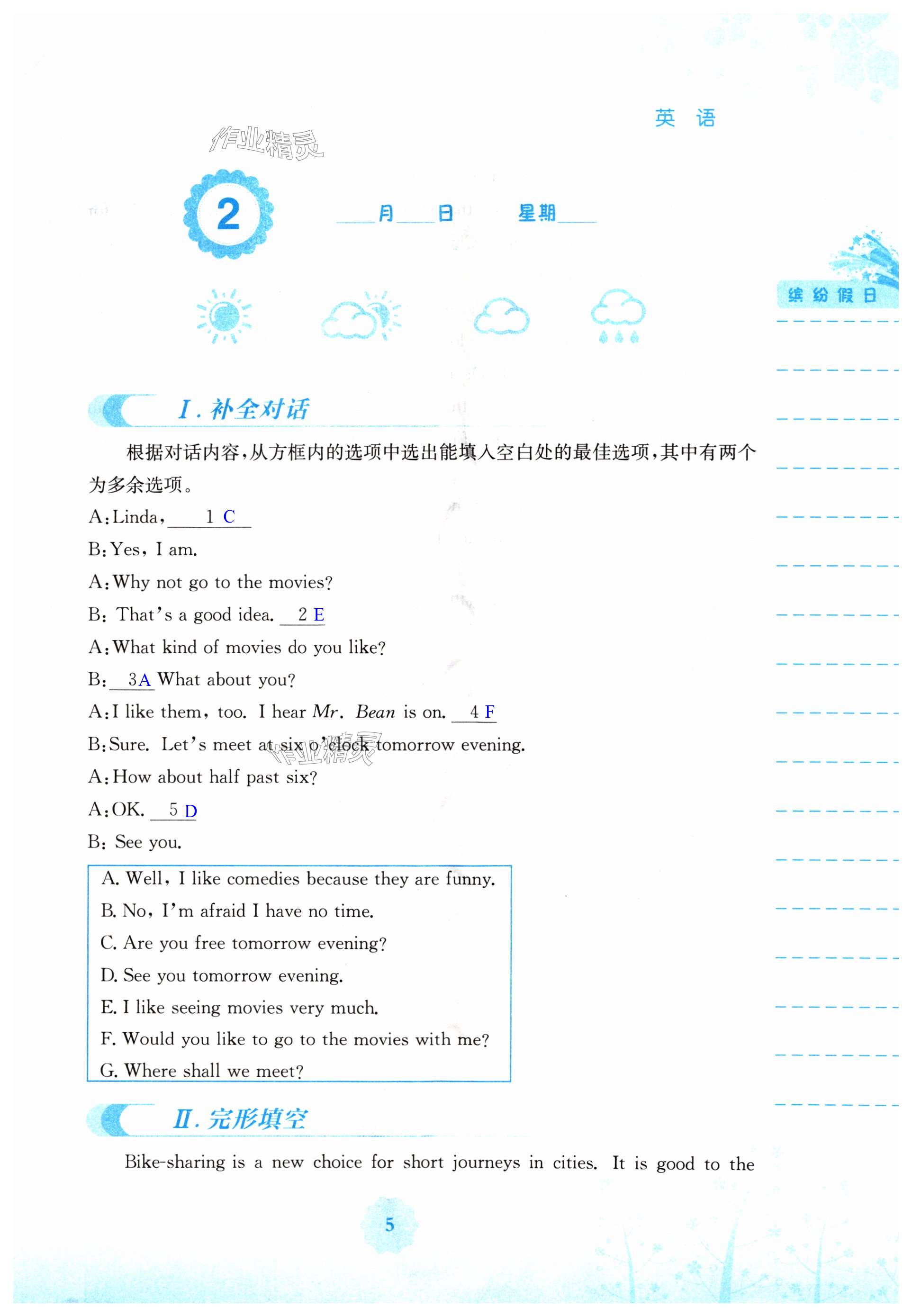 注:目前有些书本章节名称可能整理的还不是很完善,但都是按照顺序排列的,请同学们按照顺序仔细查找。练习册 2024年暑假生活安徽教育出版社八年级英语人教版 答案主要是用来给同学们做完题方便对答案用的,请勿直接抄袭。