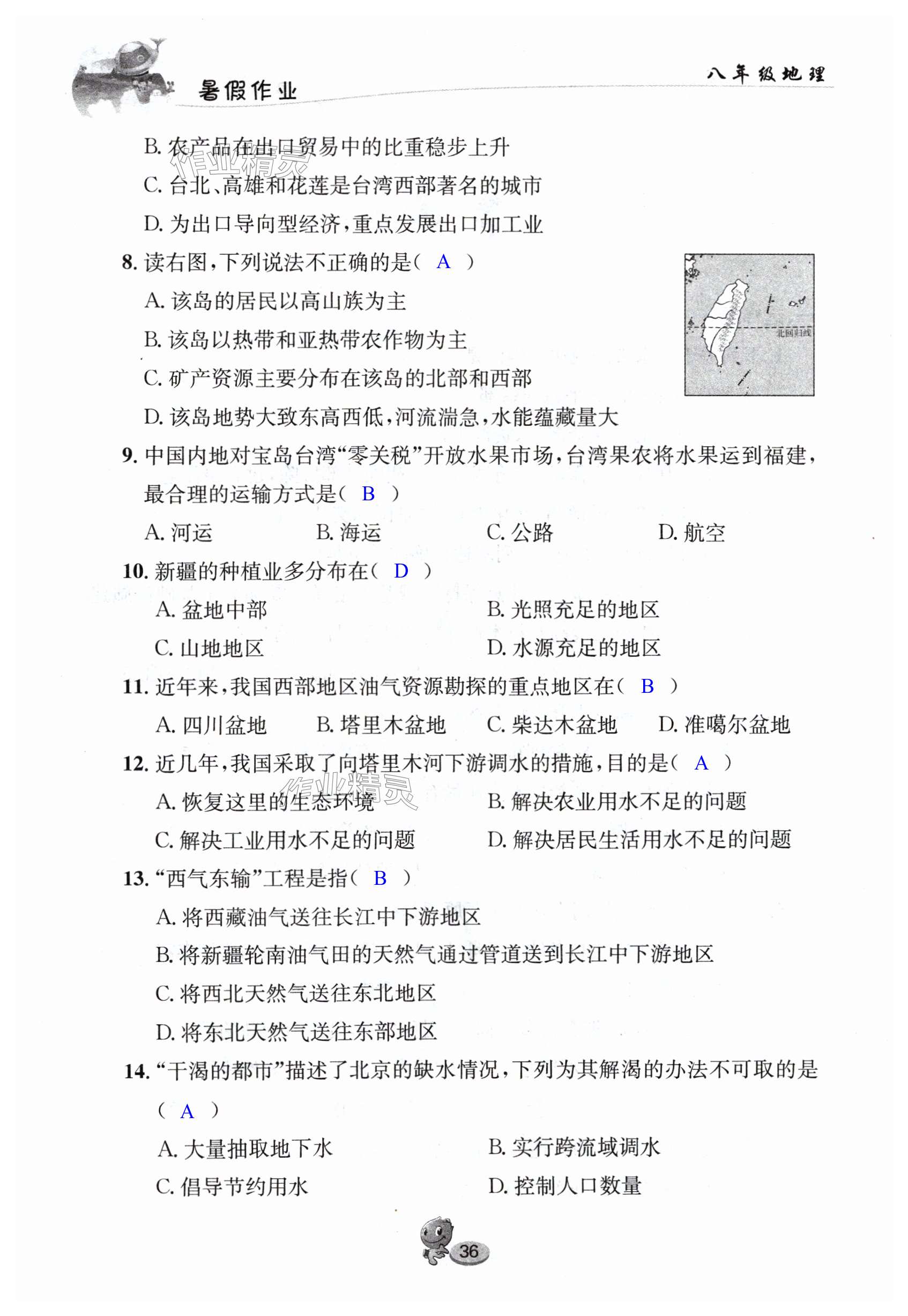 注:目前有些书本章节名称可能整理的还不是很完善,但都是按照顺序排列的,请同学们按照顺序仔细查找。练习册 2024年暑假作业长江出版社八年级地理人教版 答案主要是用来给同学们做完题方便对答案用的,请勿直接抄袭。