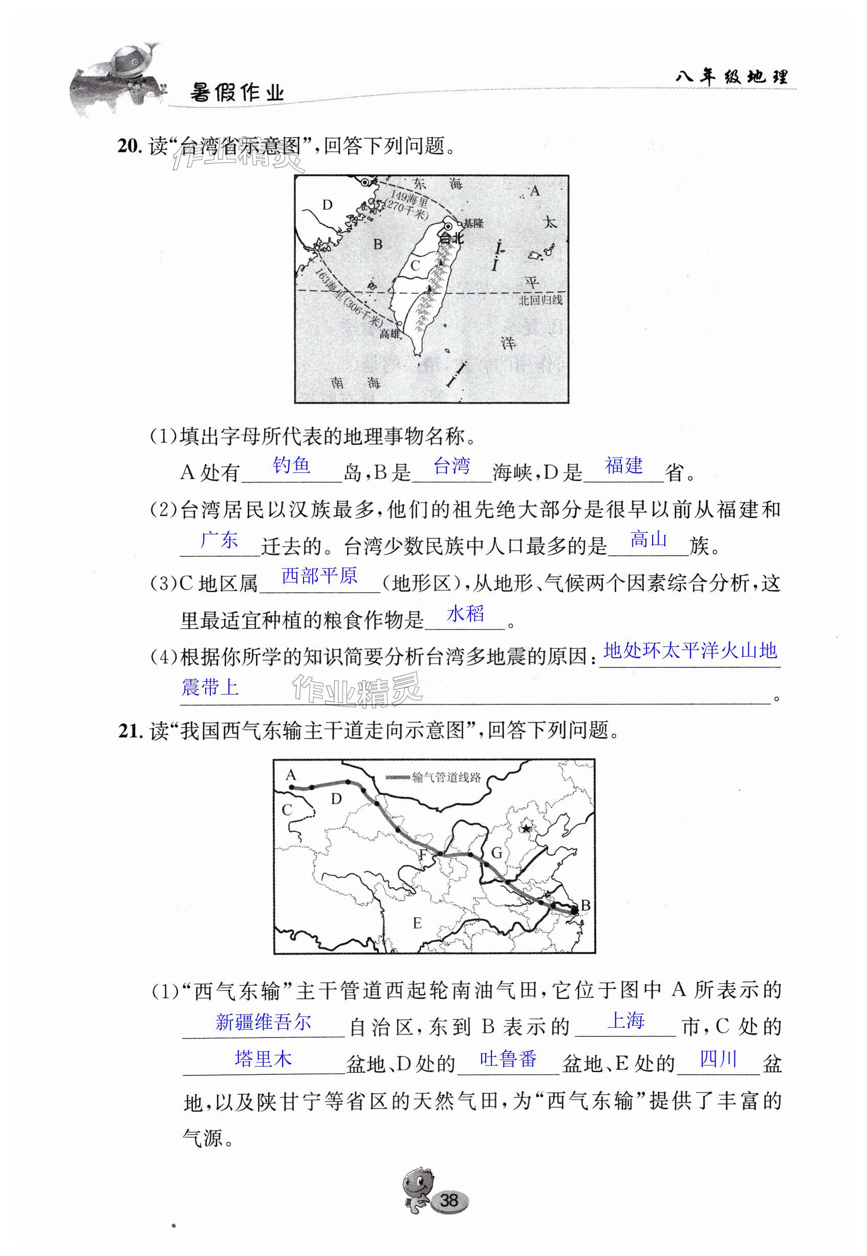 注:目前有些书本章节名称可能整理的还不是很完善,但都是按照顺序排列的,请同学们按照顺序仔细查找。练习册 2024年暑假作业长江出版社八年级地理人教版 答案主要是用来给同学们做完题方便对答案用的,请勿直接抄袭。