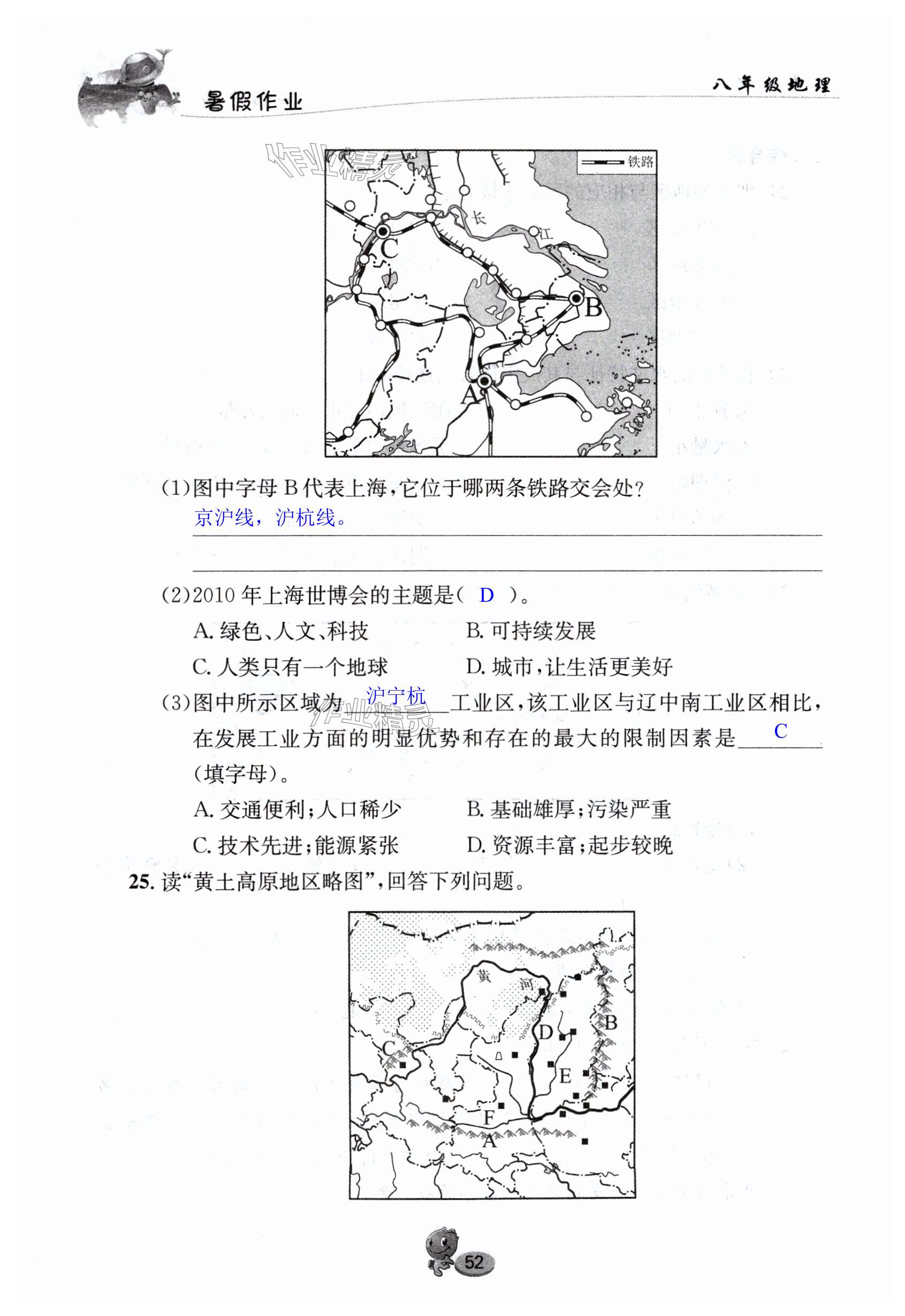 注:目前有些书本章节名称可能整理的还不是很完善,但都是按照顺序排列的,请同学们按照顺序仔细查找。练习册 2024年暑假作业长江出版社八年级地理人教版 答案主要是用来给同学们做完题方便对答案用的,请勿直接抄袭。
