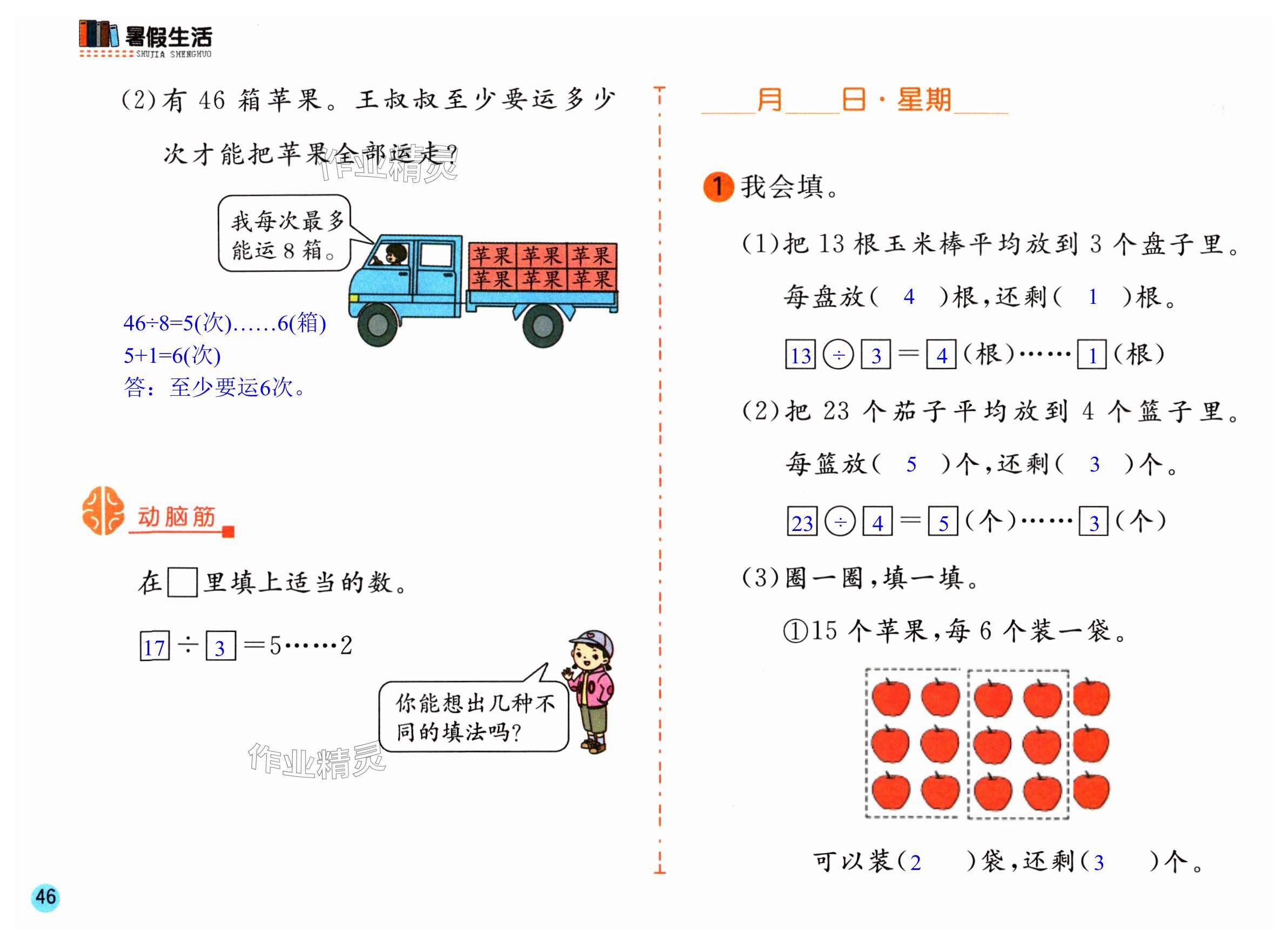 注:目前有些书本章节名称可能整理的还不是很完善,但都是按照顺序排列的,请同学们按照顺序仔细查找。练习册 2024年暑假作业安徽少年儿童出版社二年级数学人教版 答案主要是用来给同学们做完题方便对答案用的,请勿直接抄袭。
