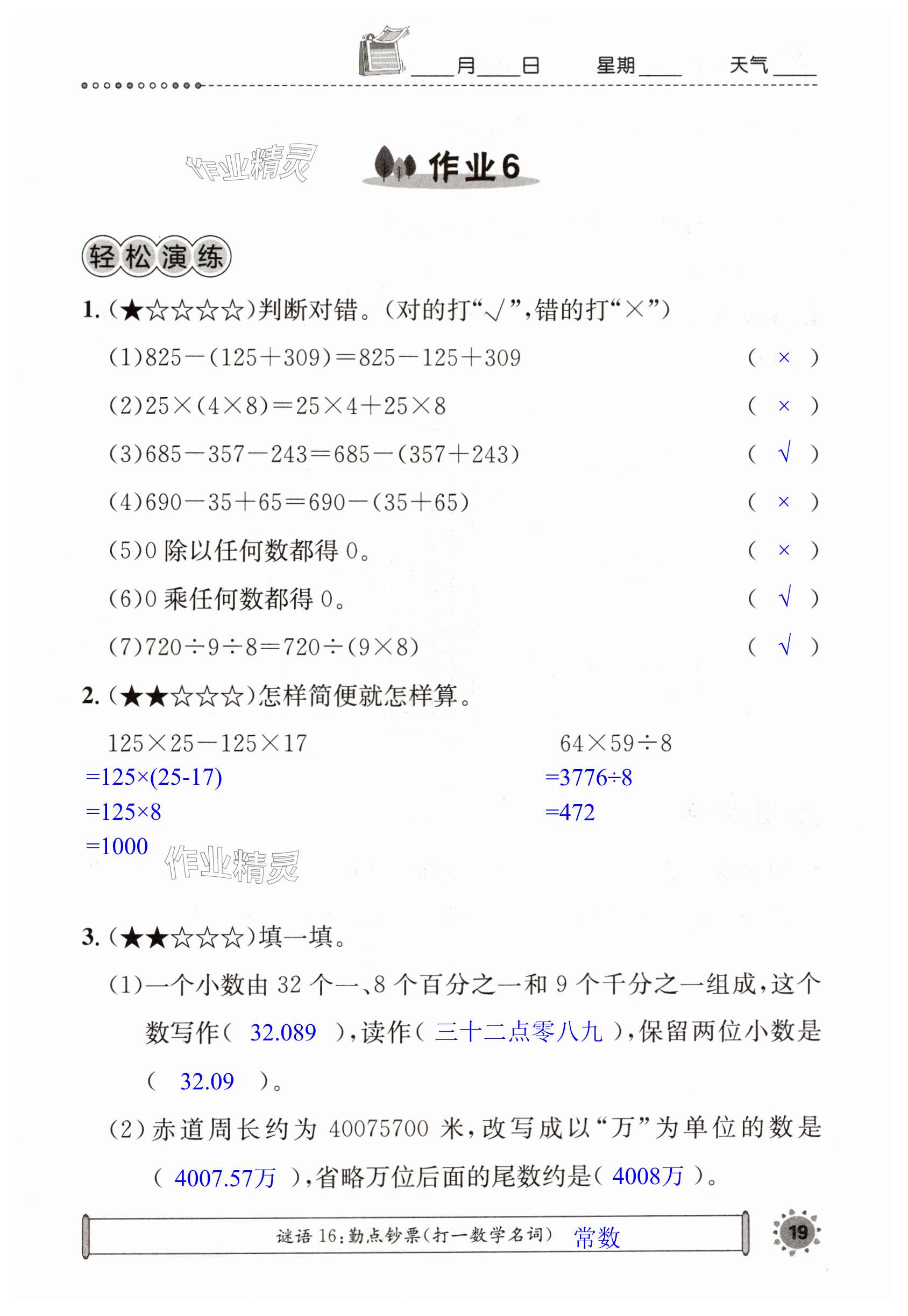 注:目前有些书本章节名称可能整理的还不是很完善,但都是按照顺序排列的,请同学们按照顺序仔细查找。练习册 2024年长江暑假作业四年级数学崇文书局 答案主要是用来给同学们做完题方便对答案用的,请勿直接抄袭。