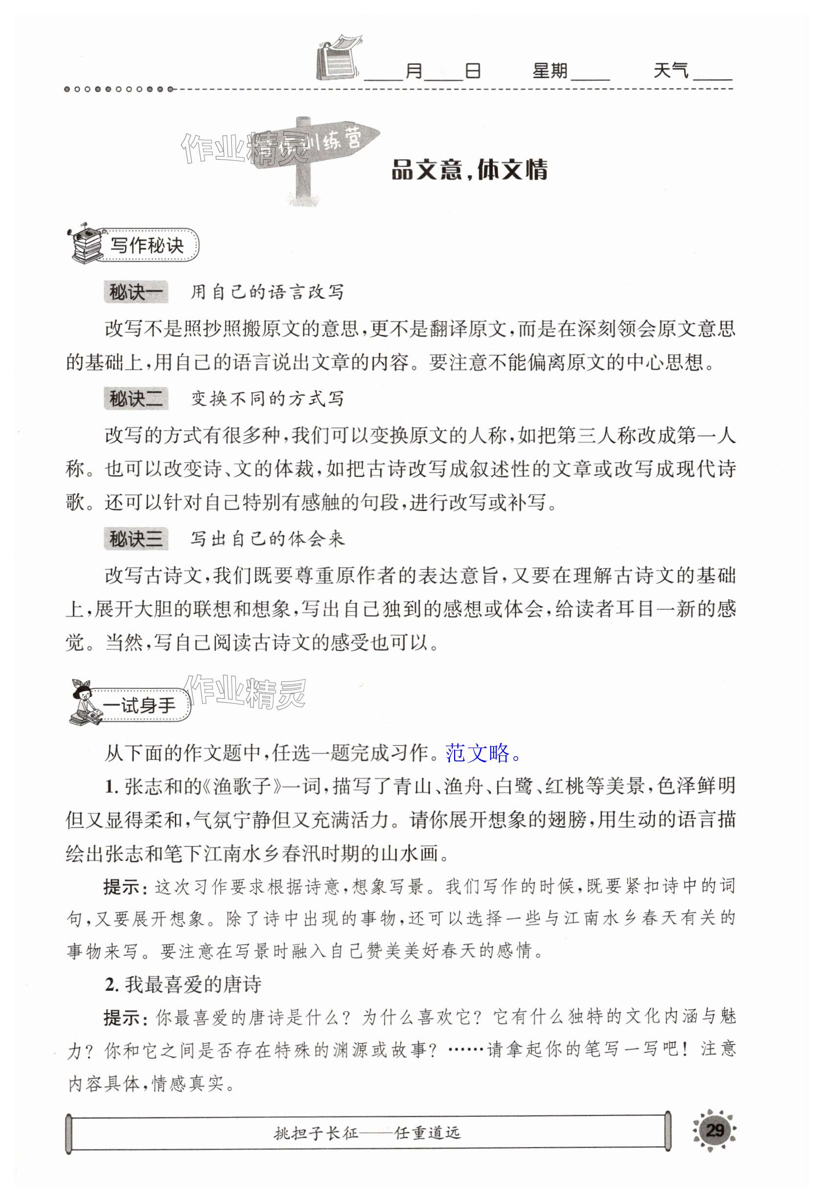 注:目前有些书本章节名称可能整理的还不是很完善,但都是按照顺序排列的,请同学们按照顺序仔细查找。练习册 2024年长江暑假作业五年级语文崇文书局 答案主要是用来给同学们做完题方便对答案用的,请勿直接抄袭。