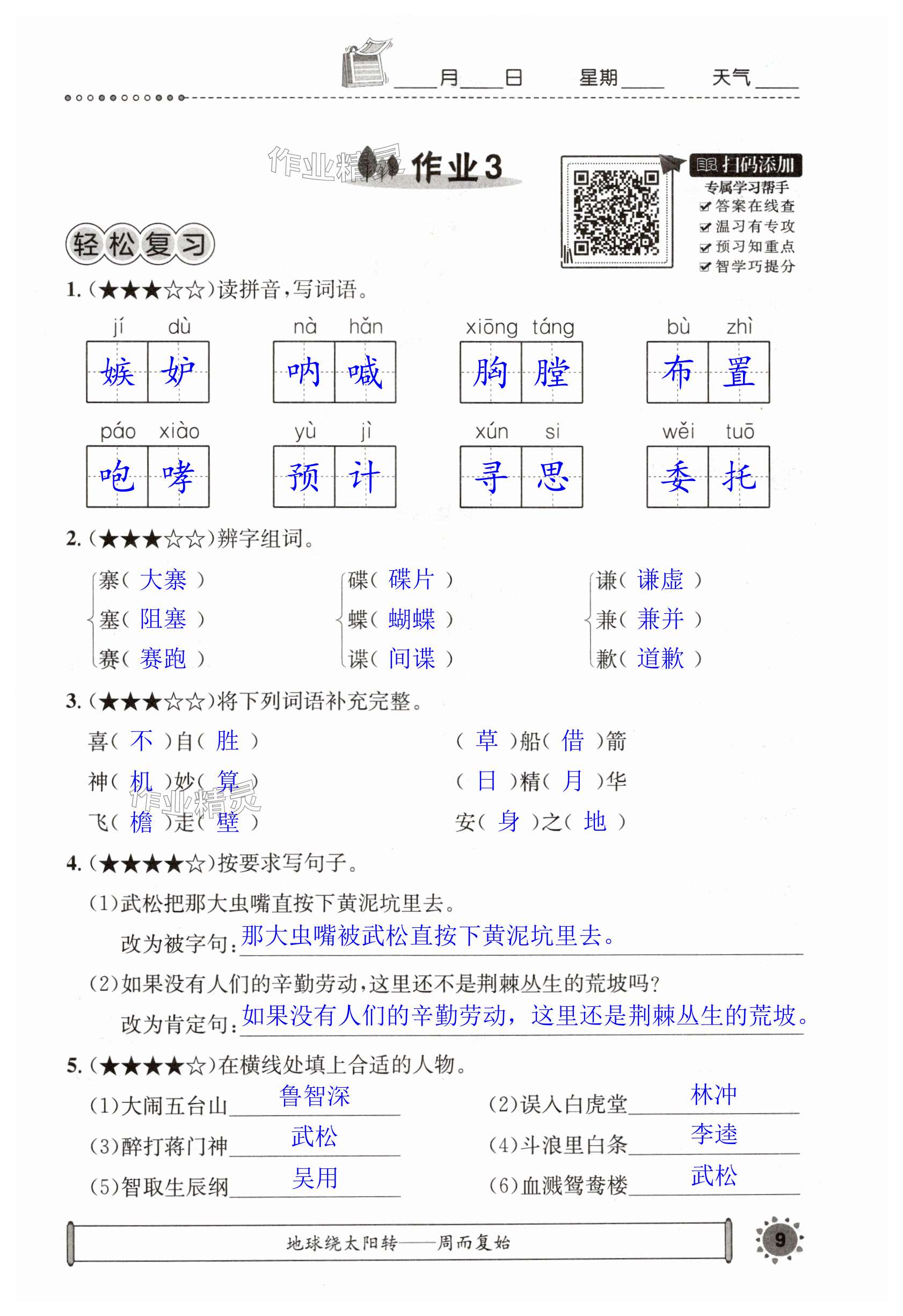 注:目前有些书本章节名称可能整理的还不是很完善,但都是按照顺序排列的,请同学们按照顺序仔细查找。练习册 2024年长江暑假作业五年级语文崇文书局 答案主要是用来给同学们做完题方便对答案用的,请勿直接抄袭。