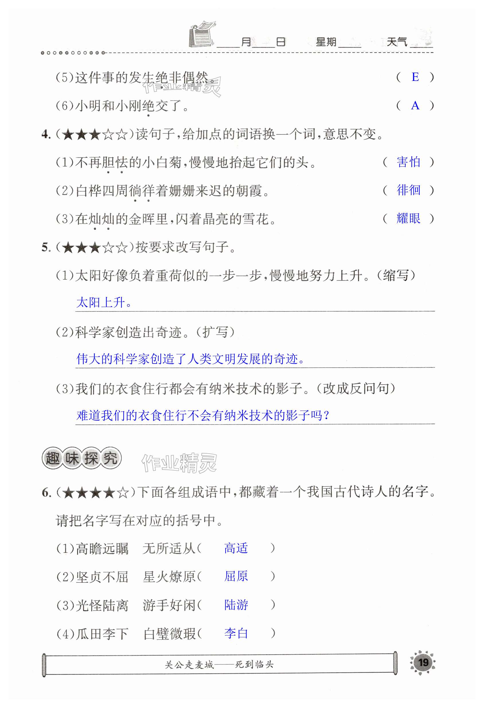注:目前有些书本章节名称可能整理的还不是很完善,但都是按照顺序排列的,请同学们按照顺序仔细查找。练习册 2024年长江暑假作业四年级语文崇文书局 答案主要是用来给同学们做完题方便对答案用的,请勿直接抄袭。