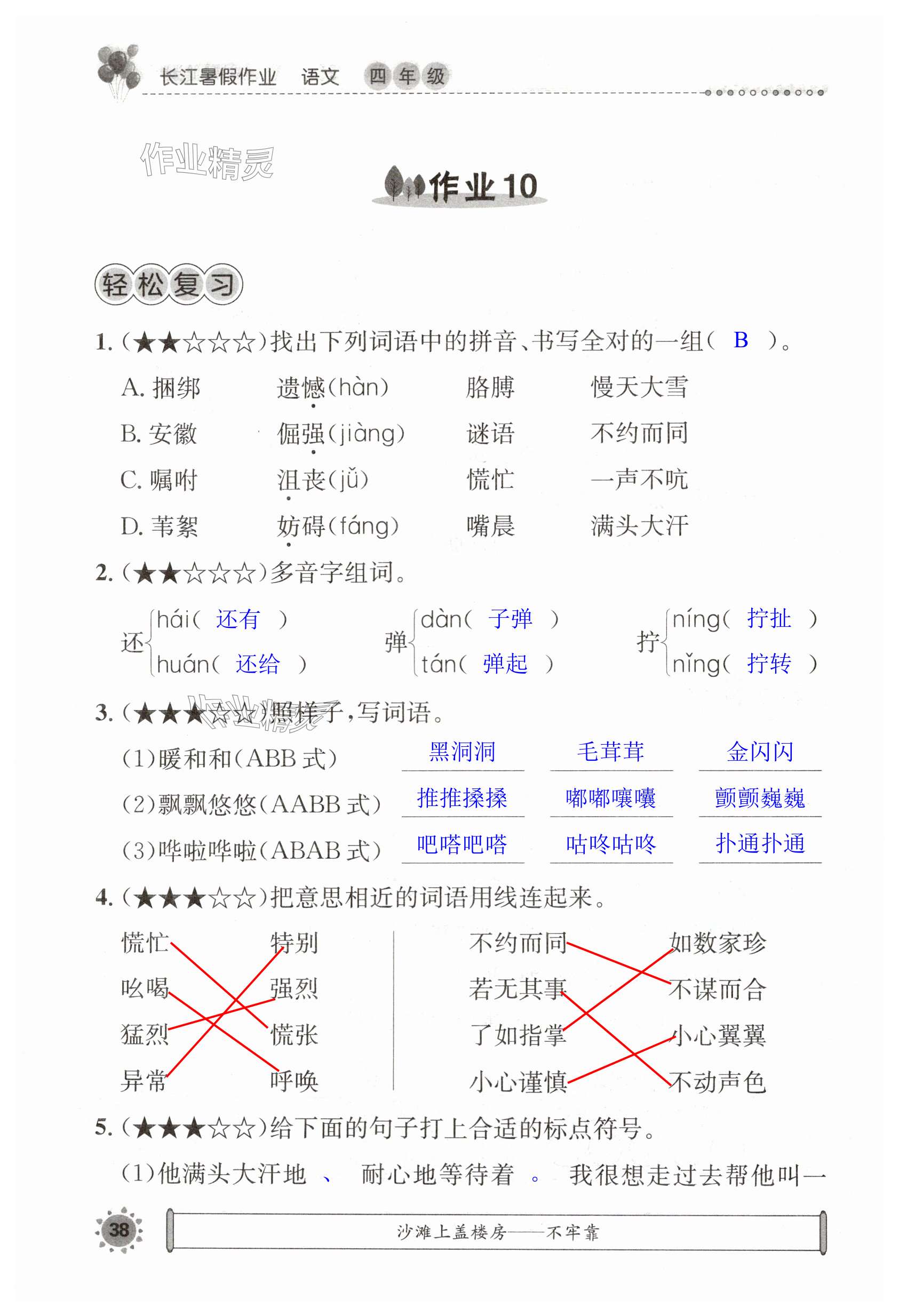 注:目前有些书本章节名称可能整理的还不是很完善,但都是按照顺序排列的,请同学们按照顺序仔细查找。练习册 2024年长江暑假作业四年级语文崇文书局 答案主要是用来给同学们做完题方便对答案用的,请勿直接抄袭。
