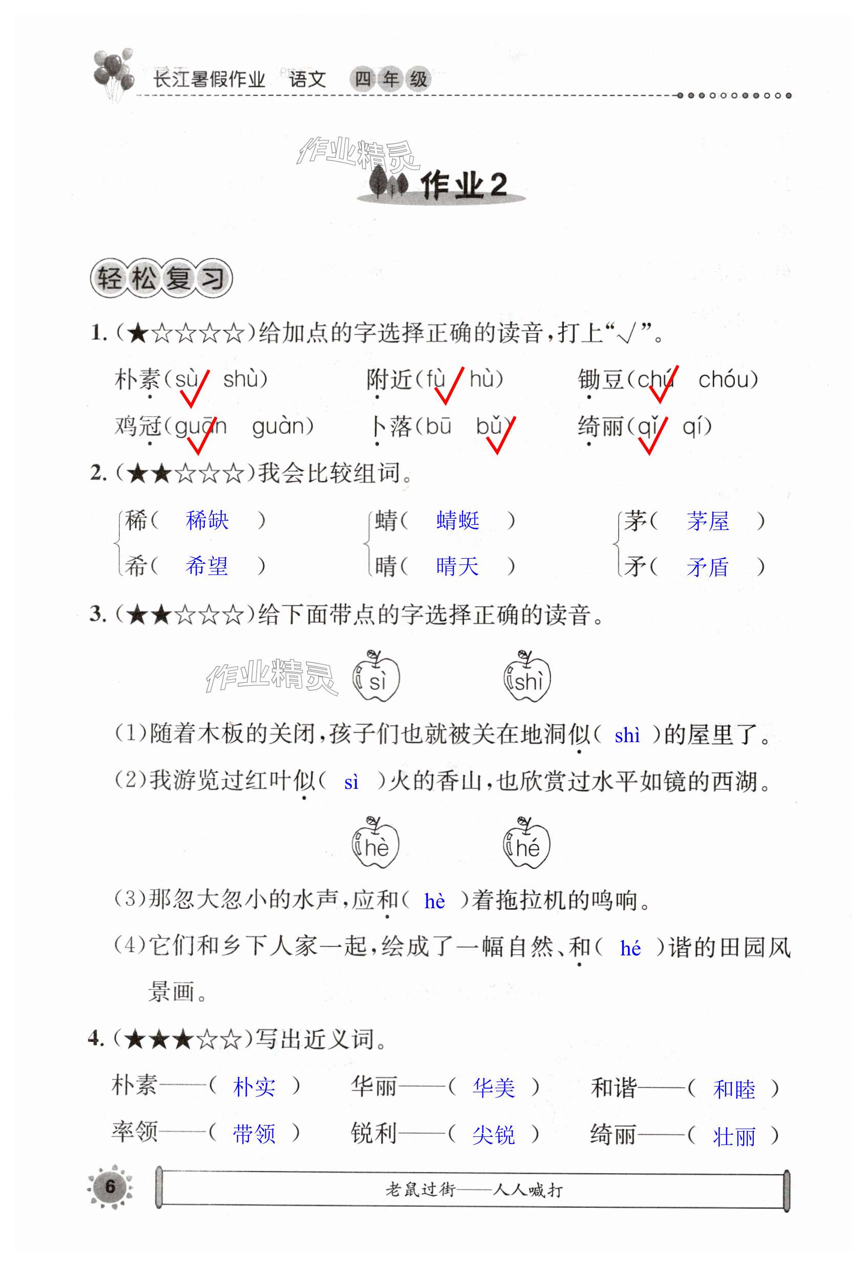 注:目前有些书本章节名称可能整理的还不是很完善,但都是按照顺序排列的,请同学们按照顺序仔细查找。练习册 2024年长江暑假作业四年级语文崇文书局 答案主要是用来给同学们做完题方便对答案用的,请勿直接抄袭。