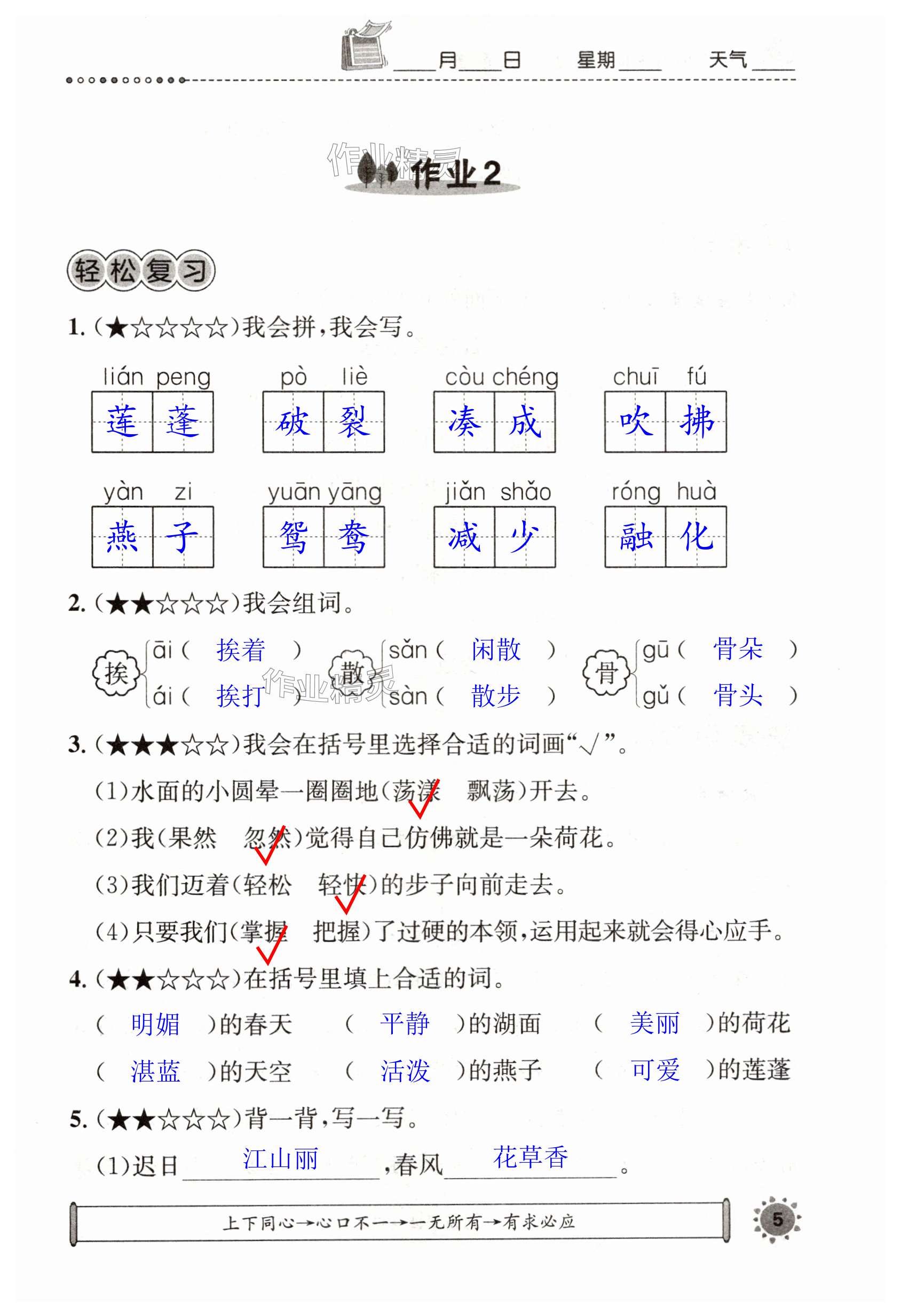 注:目前有些书本章节名称可能整理的还不是很完善,但都是按照顺序排列的,请同学们按照顺序仔细查找。练习册 2024年长江暑假作业三年级语文崇文书局 答案主要是用来给同学们做完题方便对答案用的,请勿直接抄袭。