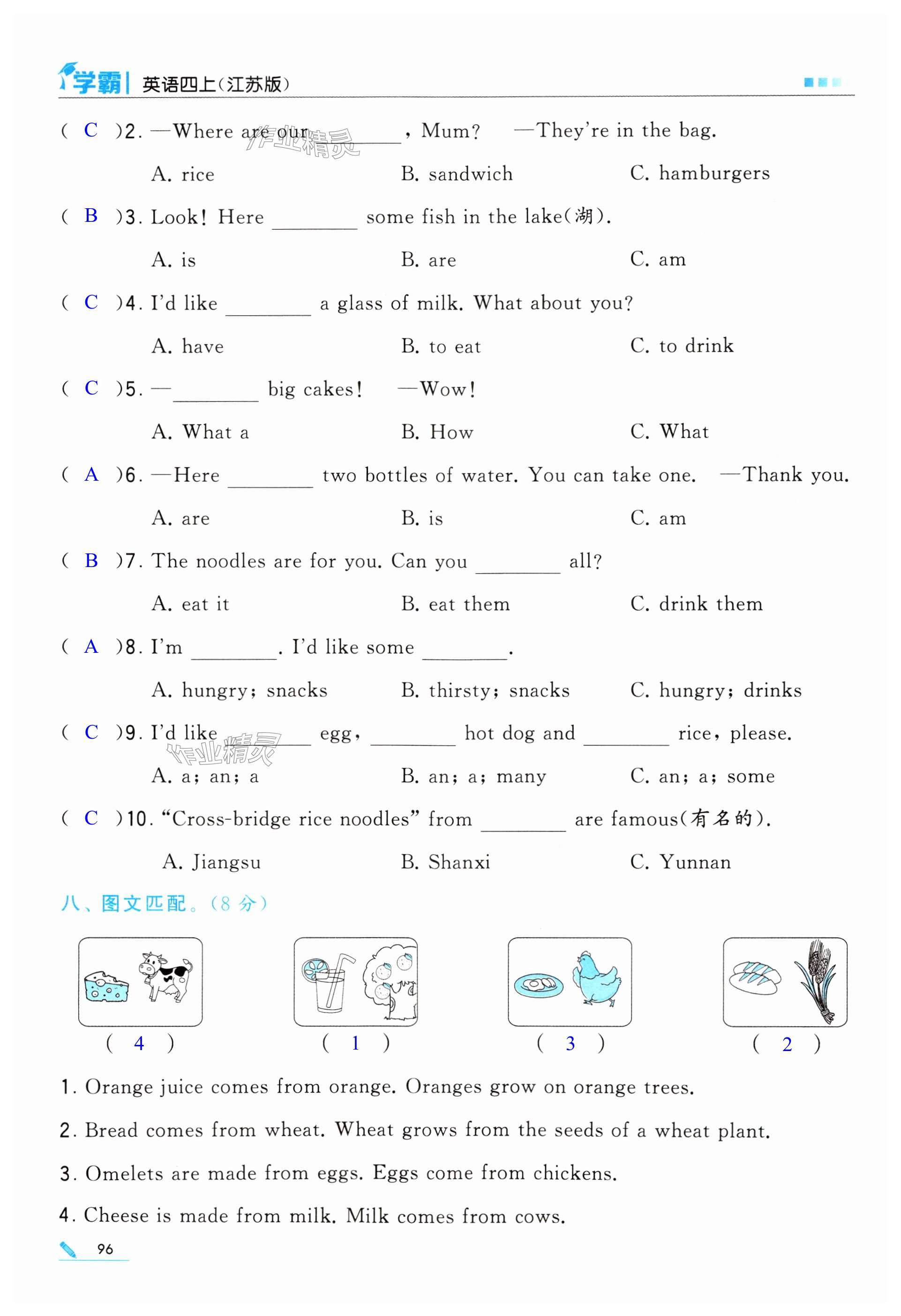 注:目前有些书本章节名称可能整理的还不是很完善,但都是按照顺序排列的,请同学们按照顺序仔细查找。练习册 2024年学霸甘肃少年儿童出版社四年级英语上册译林版 答案主要是用来给同学们做完题方便对答案用的,请勿直接抄袭。