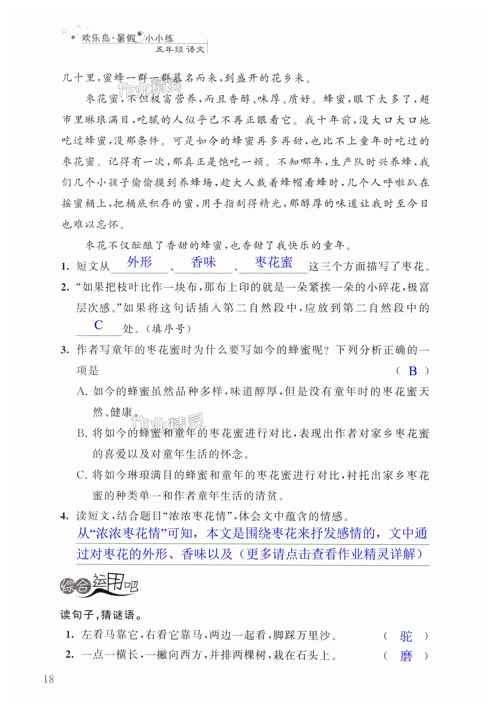 注:目前有些书本章节名称可能整理的还不是很完善,但都是按照顺序排列的,请同学们按照顺序仔细查找。练习册 2024年欢乐岛暑假小小练五年级合订本 答案主要是用来给同学们做完题方便对答案用的,请勿直接抄袭。