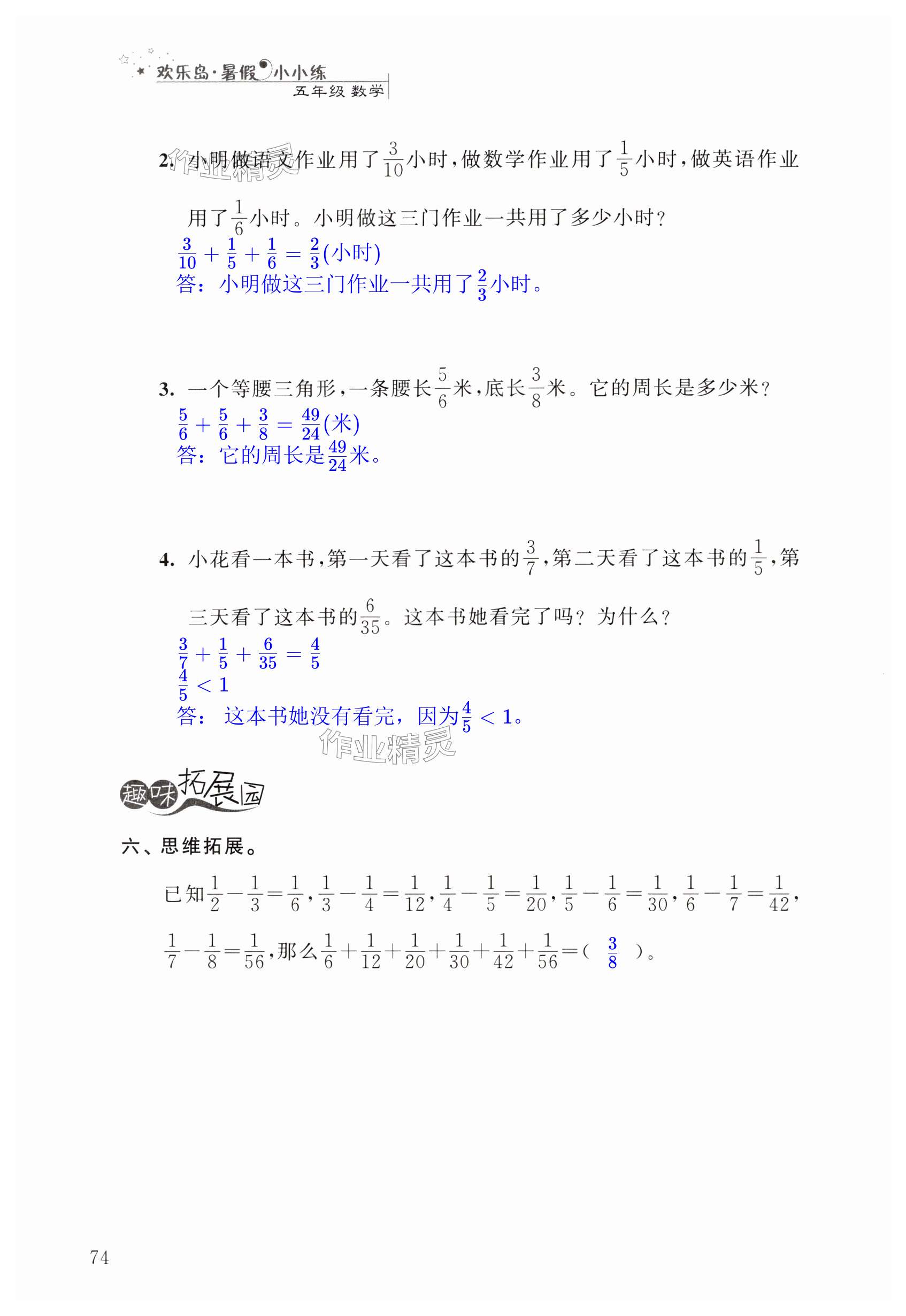 注:目前有些书本章节名称可能整理的还不是很完善,但都是按照顺序排列的,请同学们按照顺序仔细查找。练习册 2024年欢乐岛暑假小小练五年级合订本 答案主要是用来给同学们做完题方便对答案用的,请勿直接抄袭。
