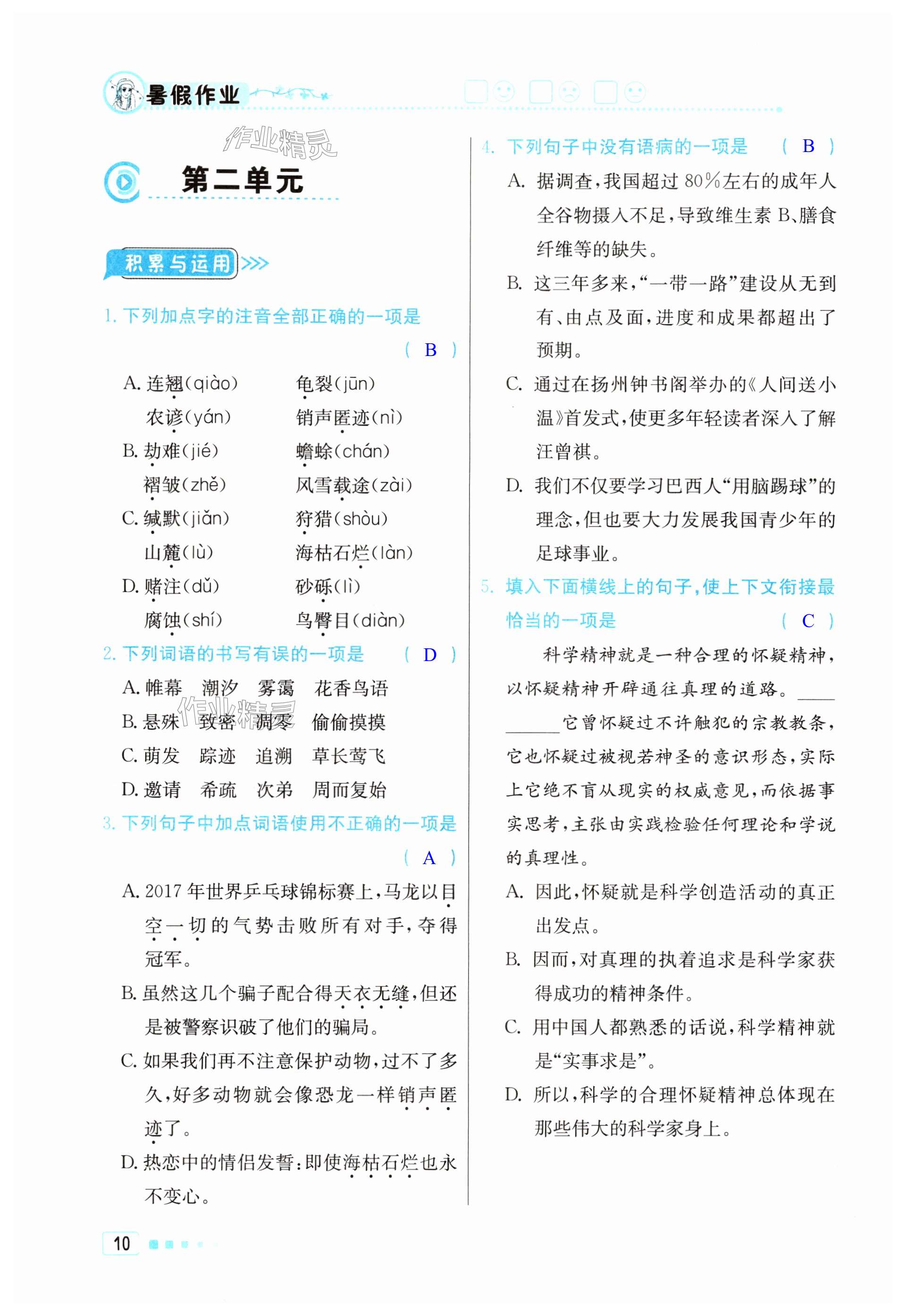 注:目前有些书本章节名称可能整理的还不是很完善,但都是按照顺序排列的,请同学们按照顺序仔细查找。练习册 2024年暑假作业八年级语文北京教育出版社 答案主要是用来给同学们做完题方便对答案用的,请勿直接抄袭。
