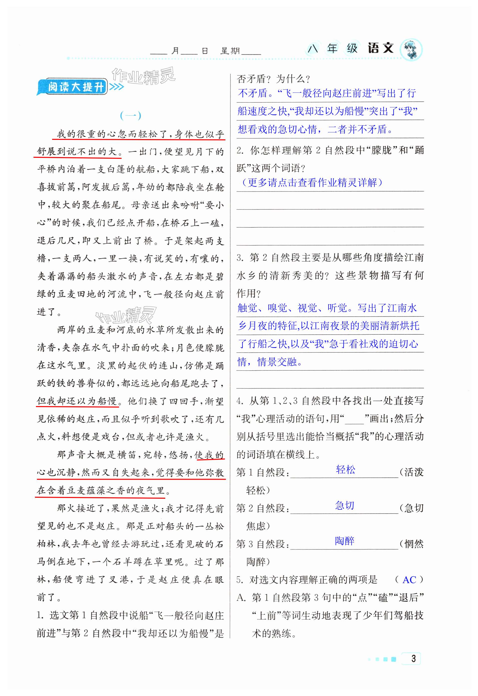注:目前有些书本章节名称可能整理的还不是很完善,但都是按照顺序排列的,请同学们按照顺序仔细查找。练习册 2024年暑假作业八年级语文北京教育出版社 答案主要是用来给同学们做完题方便对答案用的,请勿直接抄袭。