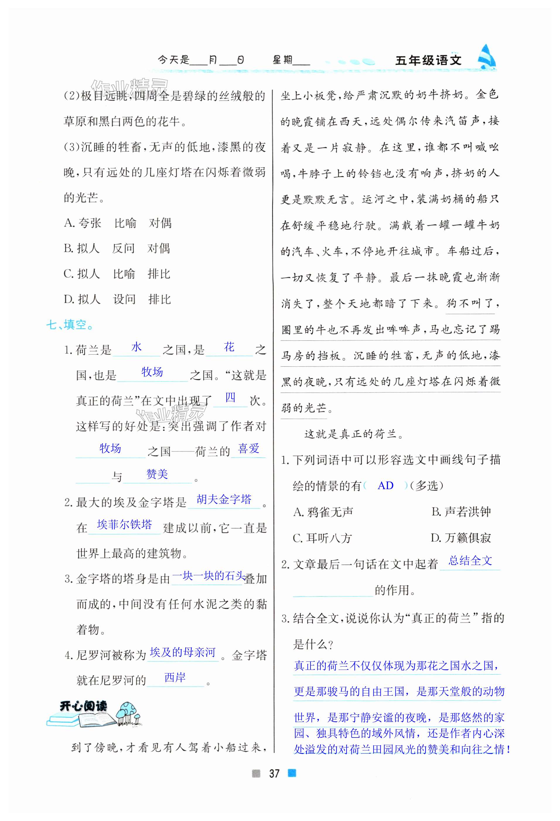 注:目前有些书本章节名称可能整理的还不是很完善,但都是按照顺序排列的,请同学们按照顺序仔细查找。练习册 2024年暑假作业小学五年级语文北京教育出版社 答案主要是用来给同学们做完题方便对答案用的,请勿直接抄袭。