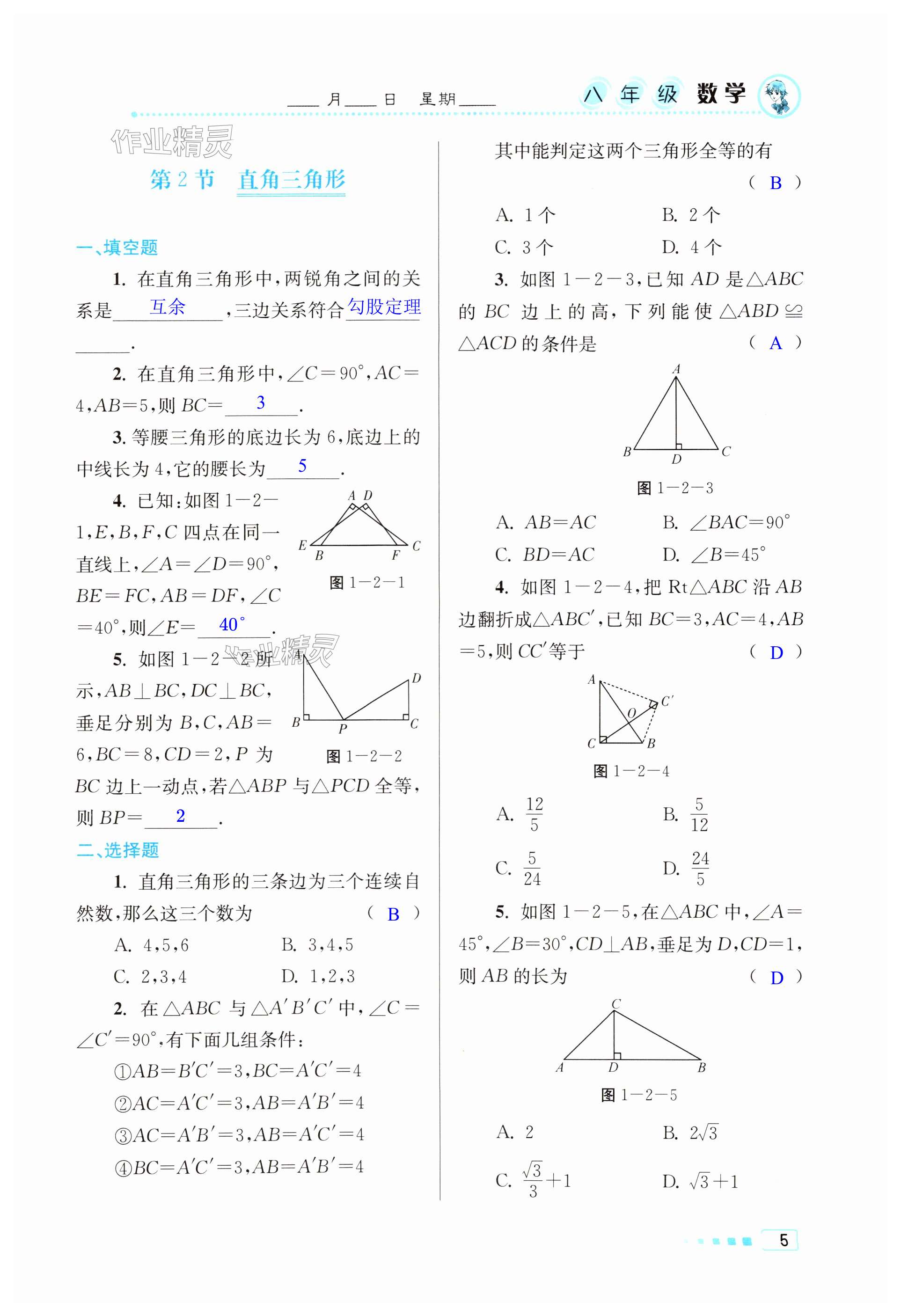注:目前有些书本章节名称可能整理的还不是很完善,但都是按照顺序排列的,请同学们按照顺序仔细查找。练习册 2024年暑假作业北京教育出版社八年级数学全一册北师大版 答案主要是用来给同学们做完题方便对答案用的,请勿直接抄袭。