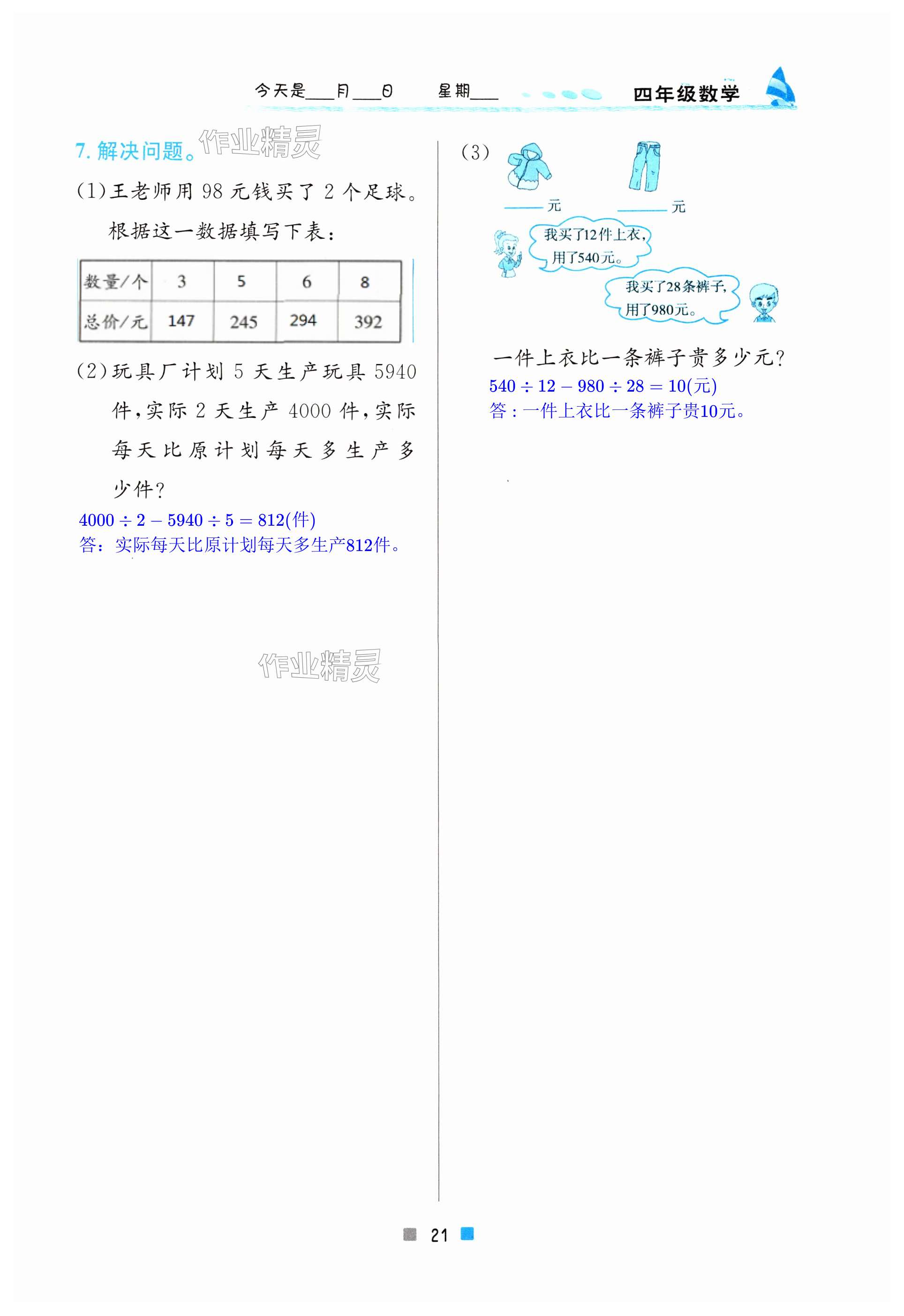 注:目前有些书本章节名称可能整理的还不是很完善,但都是按照顺序排列的,请同学们按照顺序仔细查找。练习册 2024年暑假作业北京教育出版社四年级数学全一册通用版 答案主要是用来给同学们做完题方便对答案用的,请勿直接抄袭。