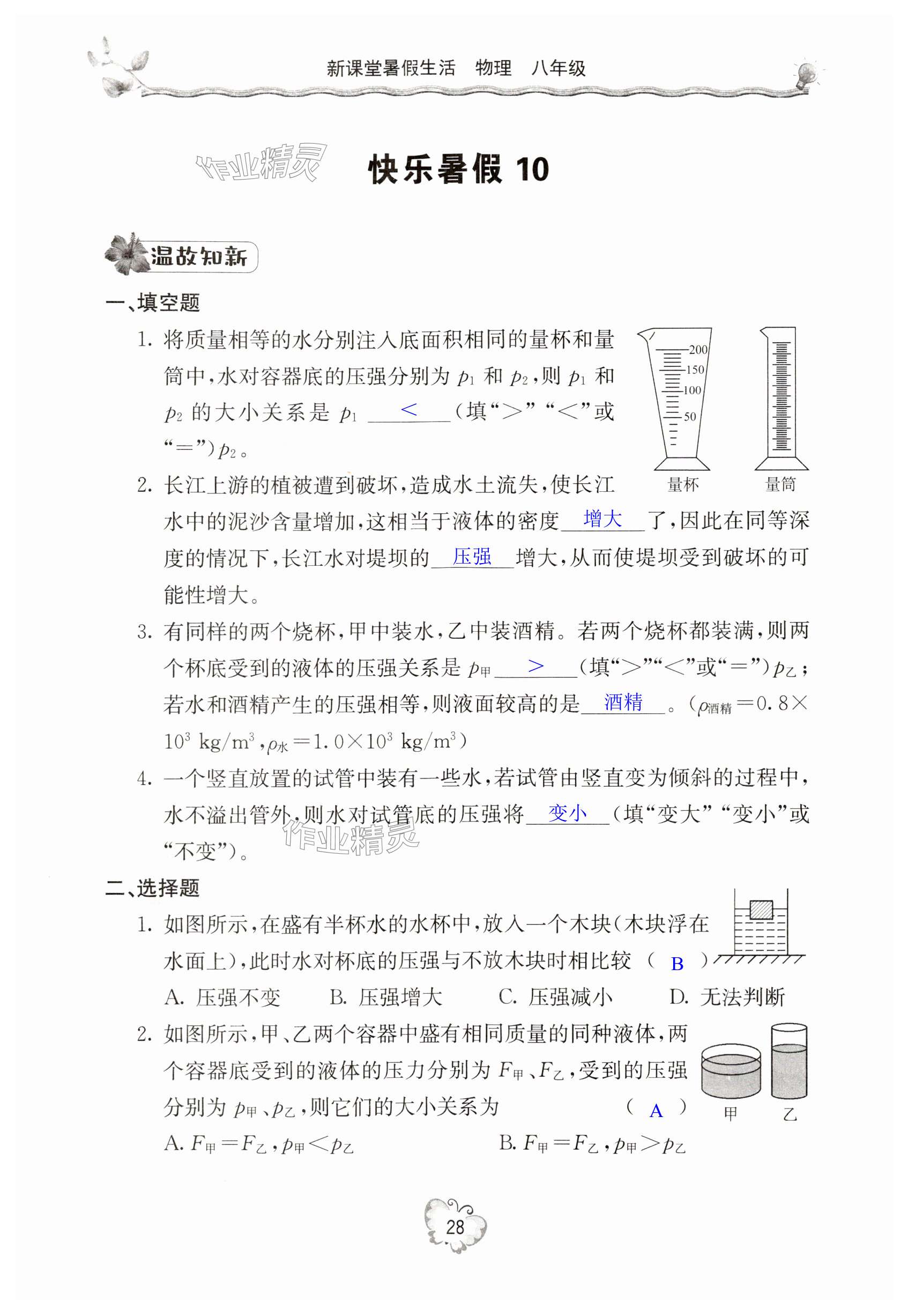 注:目前有些书本章节名称可能整理的还不是很完善,但都是按照顺序排列的,请同学们按照顺序仔细查找。练习册 2024年新课堂暑假生活八年级物理北京教育出版社 答案主要是用来给同学们做完题方便对答案用的,请勿直接抄袭。